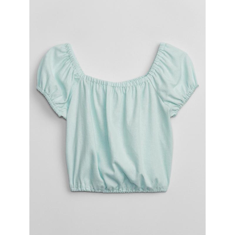 Dětský plátěný top.Hranatý výstřih.Krátké nabírané rukávy.Kratší střih a pružný lem.Jednobarevný. 100 % bavlna