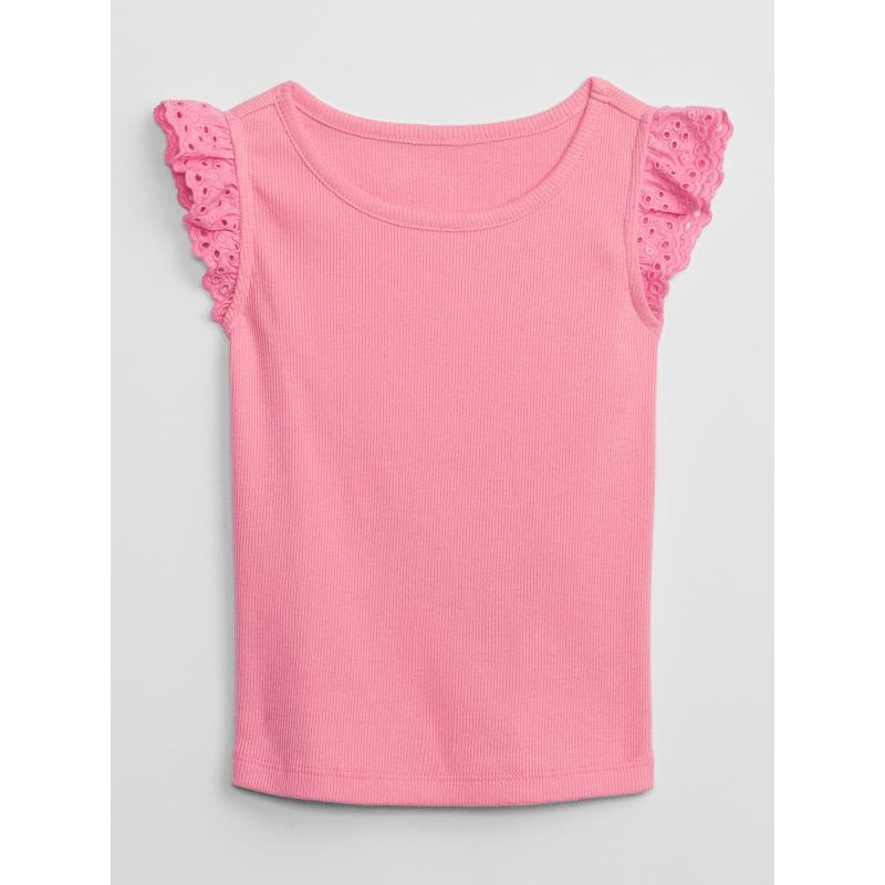 Dětský žebrovaný top.Drobný rukávek z madeirové krajky.Kulatý výstřih a rovný střih.Jednobarevný. 100 % bavlna