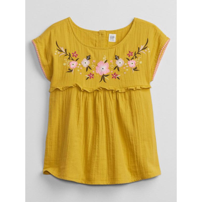 Dívčí halenka Gap.Květinová výšivka.Na zádech zapínání na knoflíčky.Spadlé kratší rukávky.100% bavlna. 100 % bavlna