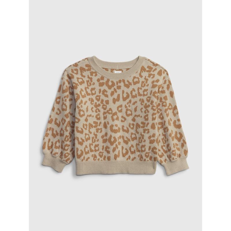 Dětský bavlněný svetr. Z měkké pleteniny. Kulatý výstřih a dlouhé spadlé rukávy. Pružné lemy. Moderní leopardí vzor. 100 % bavlna