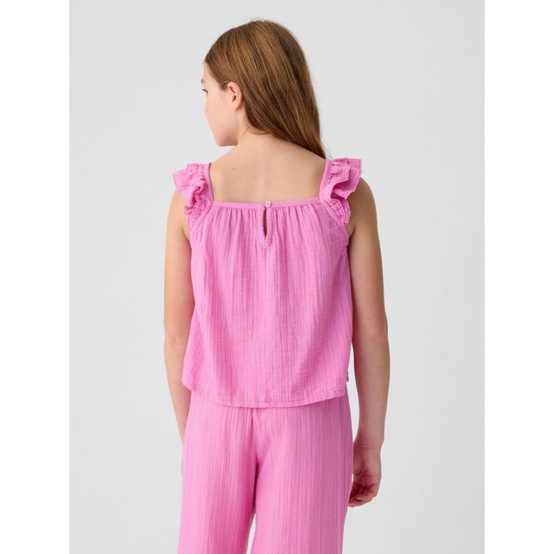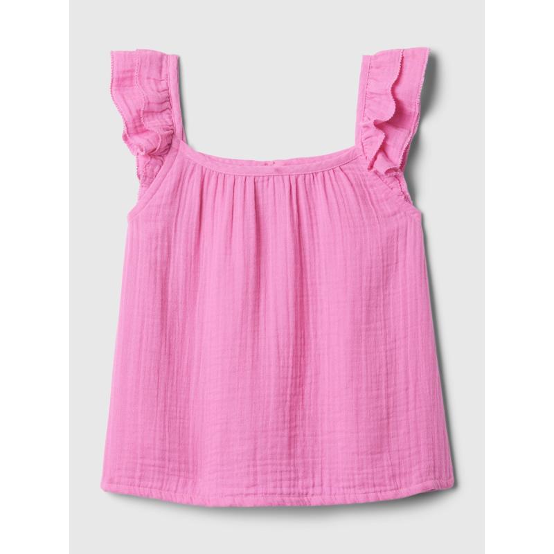 Dívčí mušelínový top.Hranatý výstřih.Volánkové rukávy.Jednobarevný. 100 % bavlna