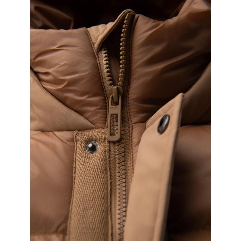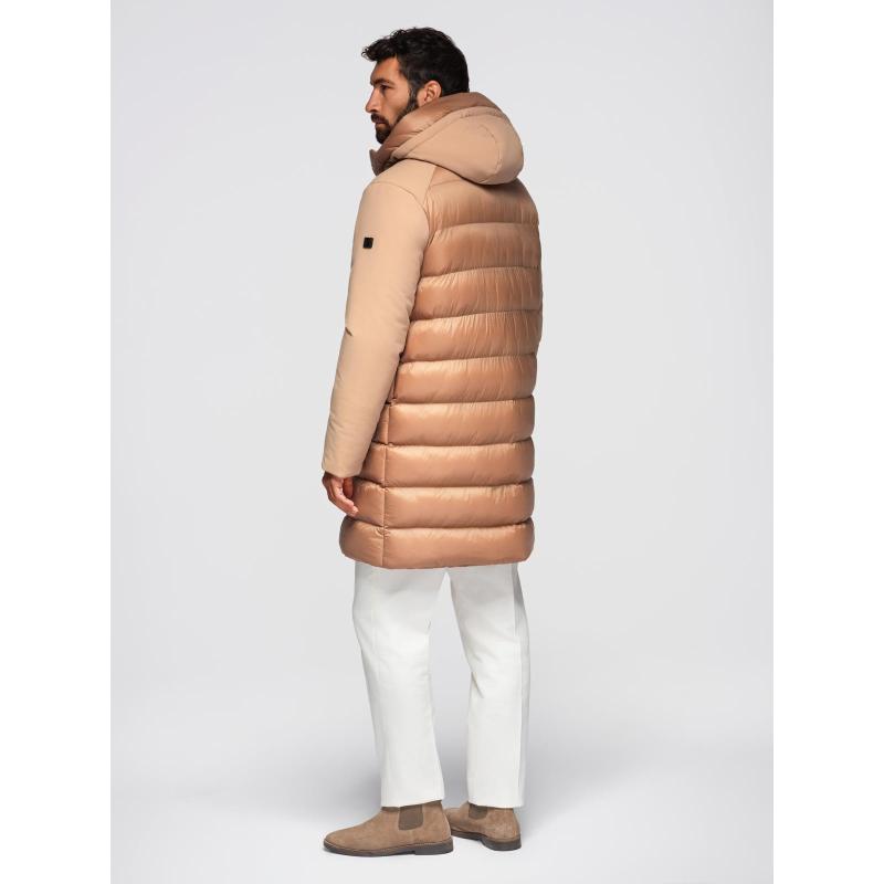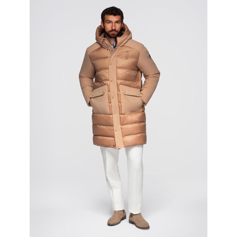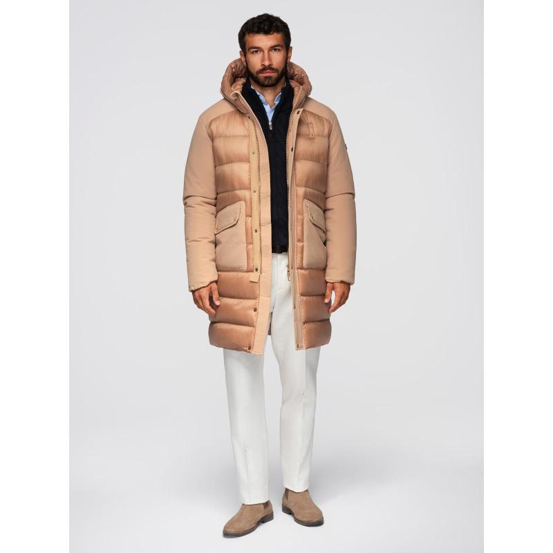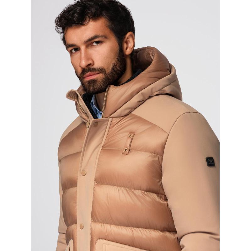 Dlouhá prošívaná pánská bunda s kapucí – šedá V2 OM-JALJ-0264