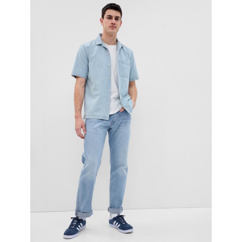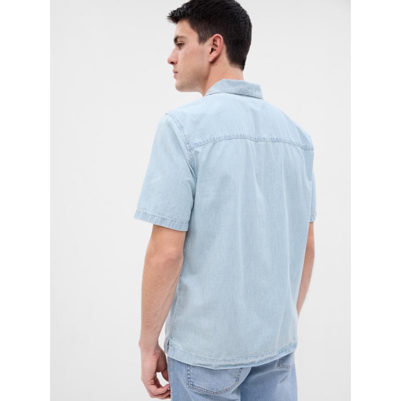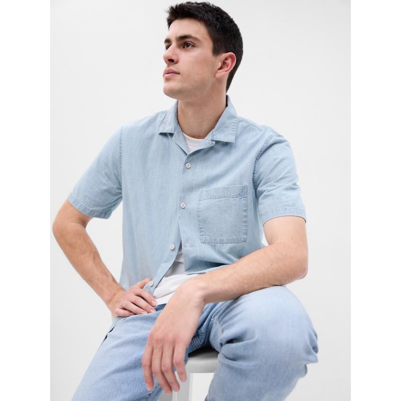 Pánská chambray košile.Kombinace stylu, pohodlí a udržitelnosti.Chambray - lehká, měkká a prodyšná tkanina z bavlny, vzhledem podobná džínovině, ale jemnější a pohodlnější, ideální pro letní oděvy.Elegantní límec.Krátké rukávy.Zapínání na knoflíky.Náprsní kapsa.Rovný, volnější střih.Délka po boky.Kousek ideální pro každodenní nošení i speciální příležitosti!Modelové: výška 185–188 cm, pas 79 cm, délka nohavic 81–84 cm, mají na sobě velikost M od značky Gap. 100 % bavlna