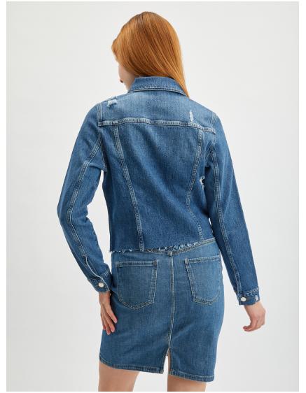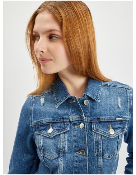 Dámská bunda s dírami dlouhá džínová CHIMA modrá