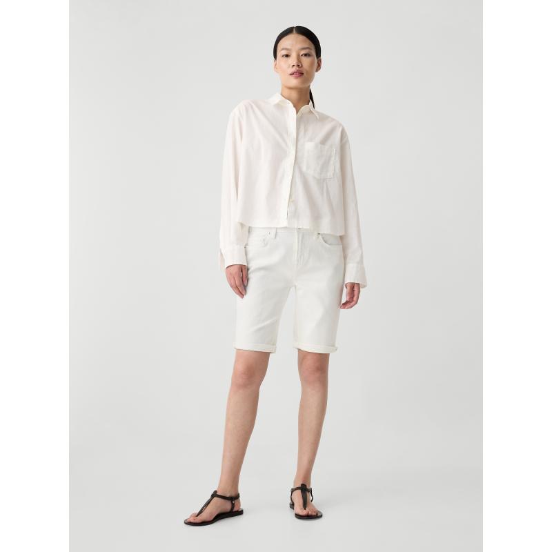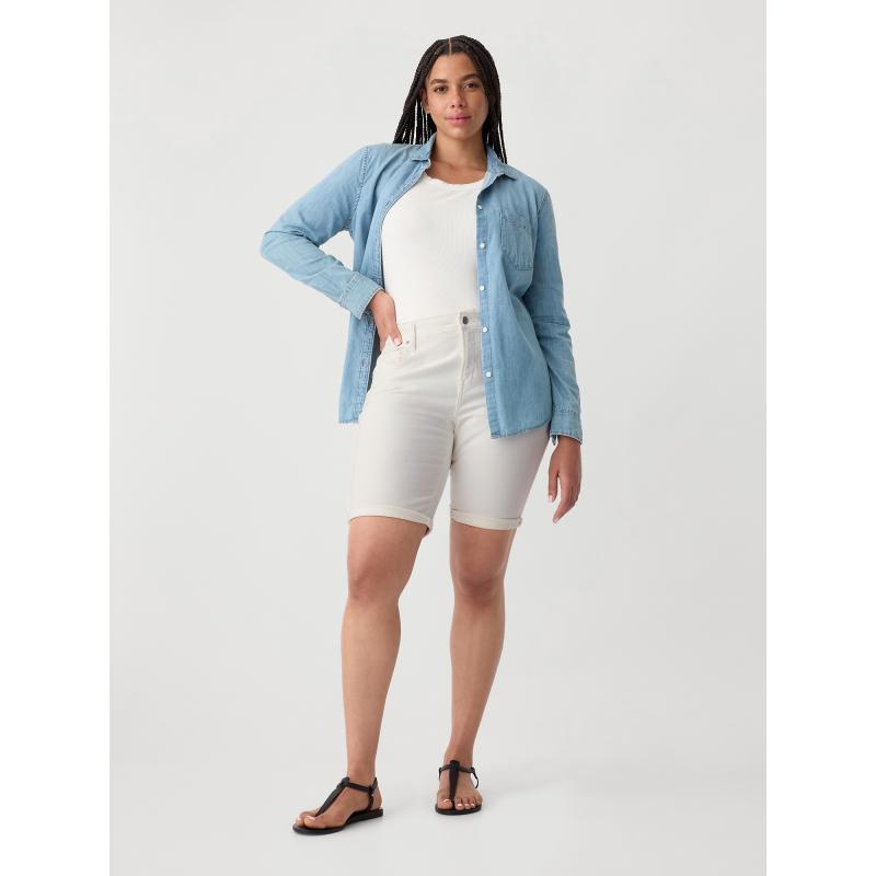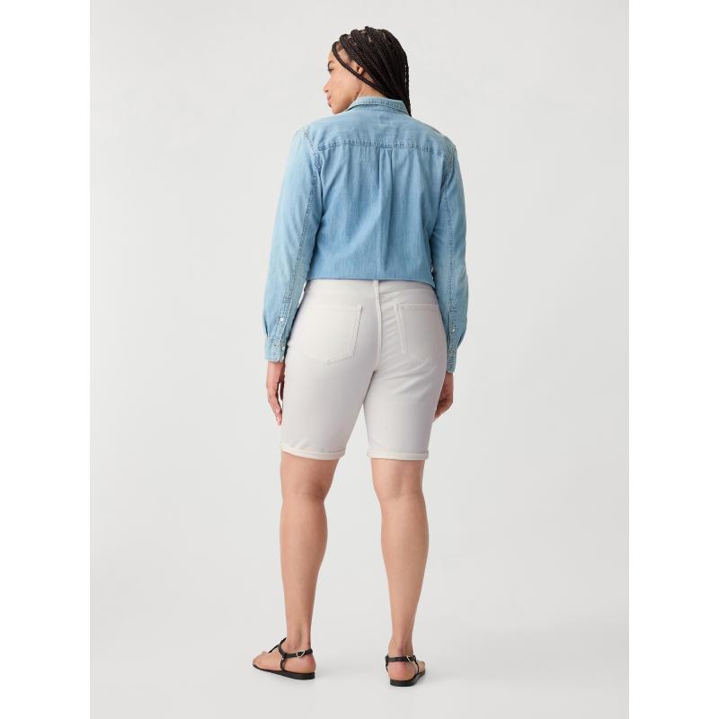 Dámské džínové kraťasy.Pevný pas s poutky na pásek.Zapínání na zip a knoflík.Bermudy nad kolena.Styl s 5 kapsami.S elastanem.Délka vnitřního švu 23 cm. 99 % bavlna Better Cotton (BCI), 1 % elastan