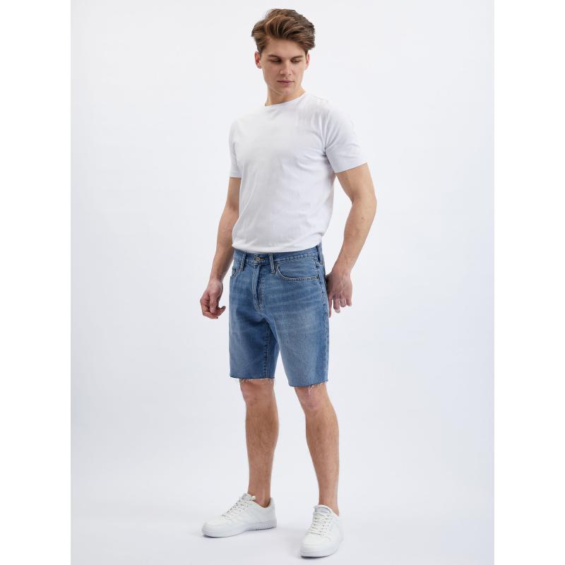 Pánské džínové kraťasy.Volný střih straight.Pevný pas s poutky na pásek.Zapínání na knoflík a zip.S 5 kapsami. 100 % bavlna