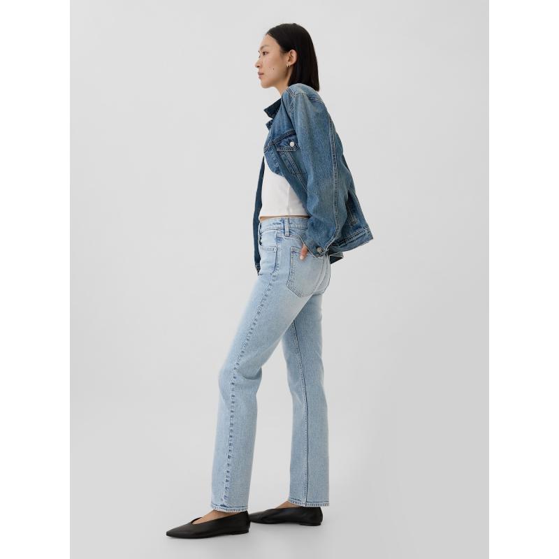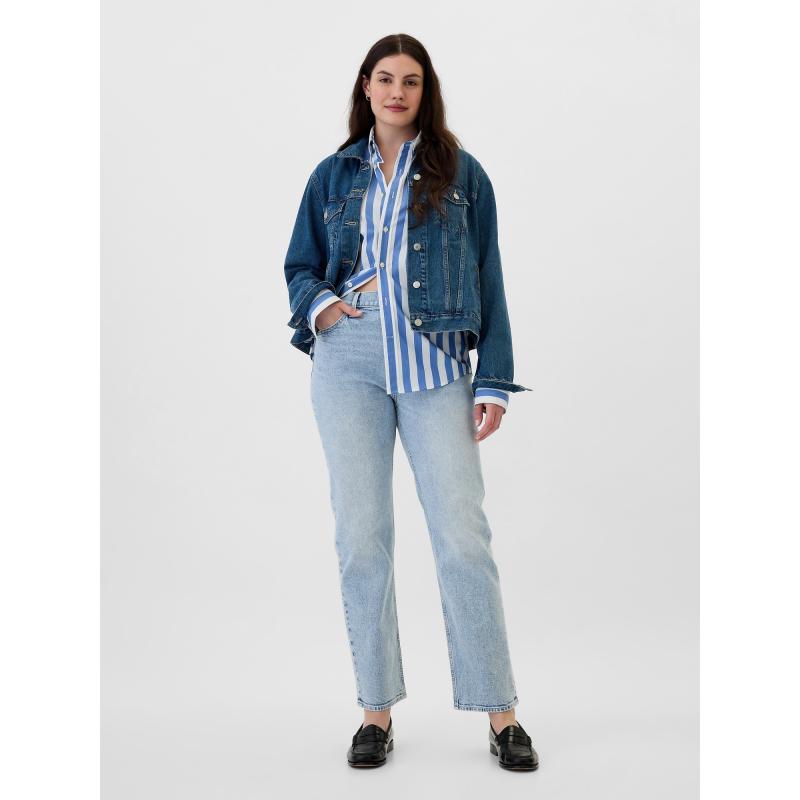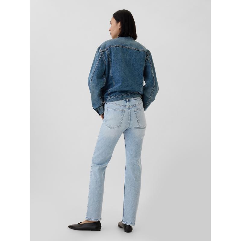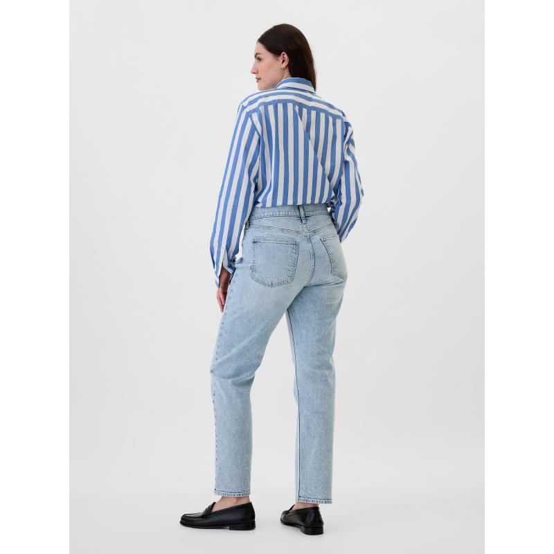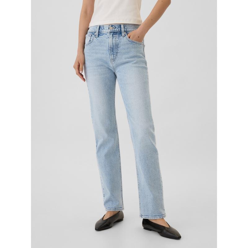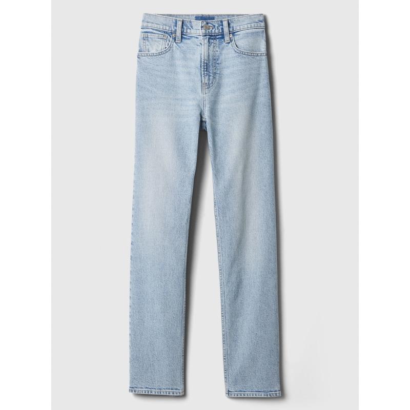 Dámské straight džíny. Strečová džínovina. Lehký indigový odstín s vyšisovaným efektem. Zapínání na knoflík, zip. Klasický střih s pěti kapsami. Vysoký pas. Úzké kolem boků a stehen. Rovné nohavice. Délka švu: 31 palců (cca 79 cm). Tento produkt je vyroben z 5 % recyklované bavlny. 93 % bavlna, 5 % recyklovaná bavlna, 2 % elastan