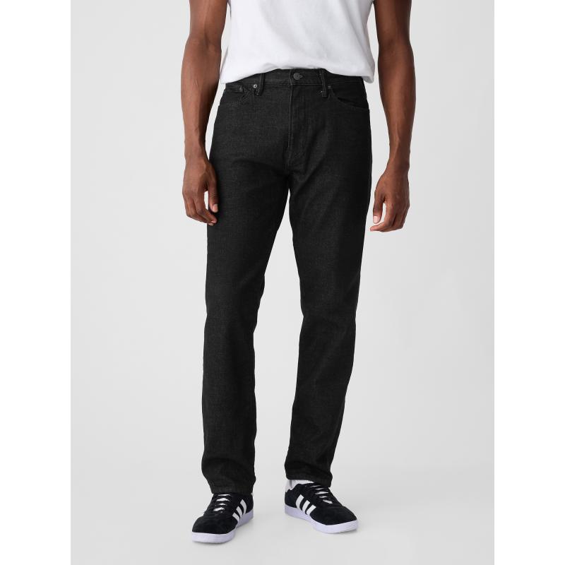 Pánské straight džíny. Černé provedení. Střední výška pasu. Zapínání na knoflík a zip. Klasický střih s pěti kapsami. Pohodlné přes boky a stehna. Rovné nohavice. Džíny s nízkým procentem strečovosti. Obsahuje 5 % recyklovaných materiálů. Lepší džíny = lepší planeta.Produkty vyrobené technologií GapFlex vynikají mimořádnou pružností, komfortem a perfektně vám sednou. Každý kus je navržen tak, aby se maximálně přizpůsobil vašemu pohybu a byl dostatečně pohodlný po celý den. 94 % bavlna, 5 % recyklovaná bavlna, 1 % elastan