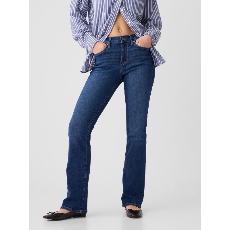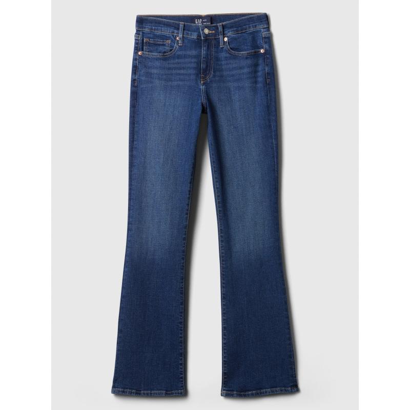 Dámské džíny. Bootcut střih. Středně vysoký pas. Zapínání na knoflík a zip. 5 kapes. Strečový denim. Přiléhavé v oblasti boků a stehen. Vnitřní délka nohavic: 80 cm. 86 % bavlna, 7 % polyester, 5 % recyklovaná bavlna, 2 % elastan