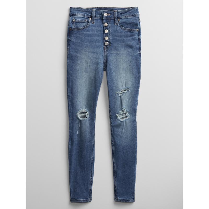 Dámské džíny jeggings.Vysoce střižený pas.Pevný pas s poutky na pásek.Zapínání na kovové knoflíky.Styl s 5 kapsami.Záměrně obnošený vzhled.S příměsí recyklované bavlny a polyesteru. 86 % bavlna, 7 % recyklovaný polyester, 5 % recyklovaná bavlna, 2 % elastan