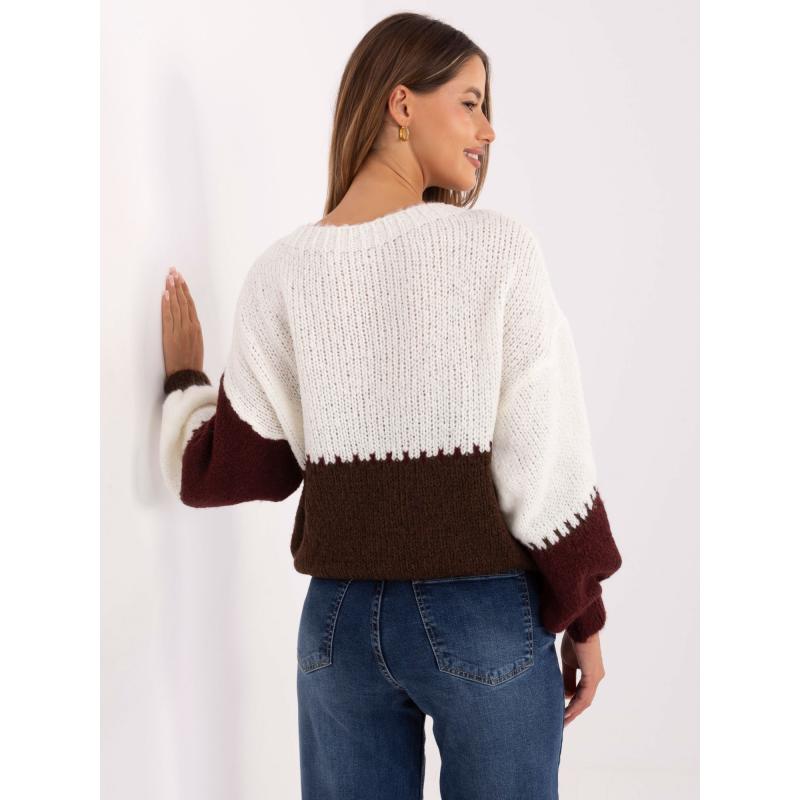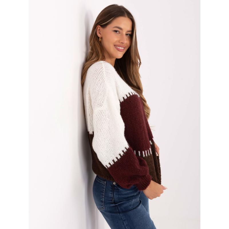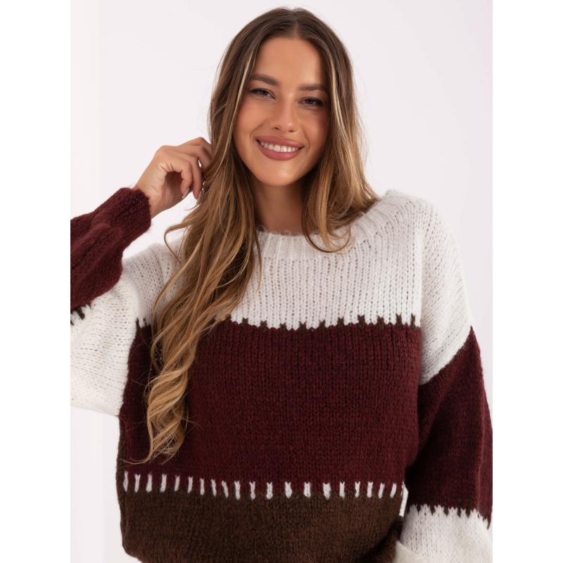 Ecru-bordový oversize svetr s vlnou RUE PARIS
