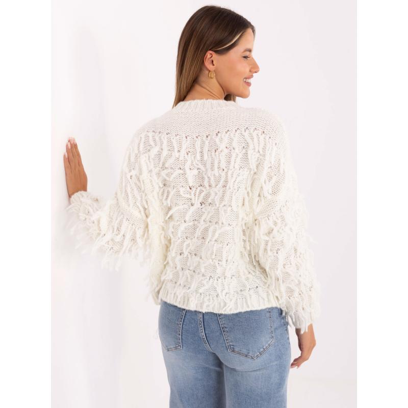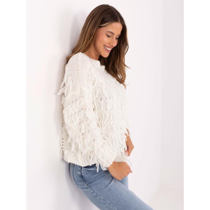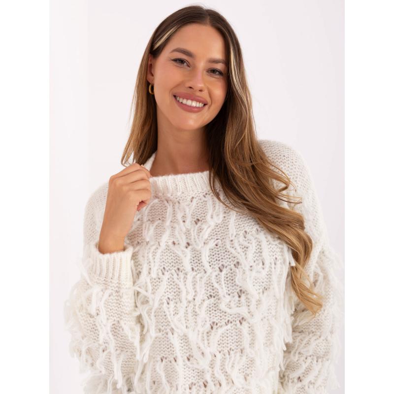 Ecru dámský svetr boho s vlnou RUE PARIS