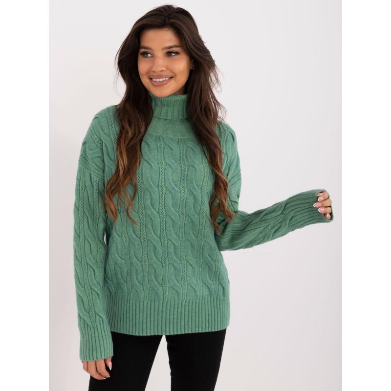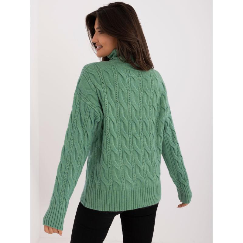 Dámský svetr s rolákem a náplety DUNA světle mátový