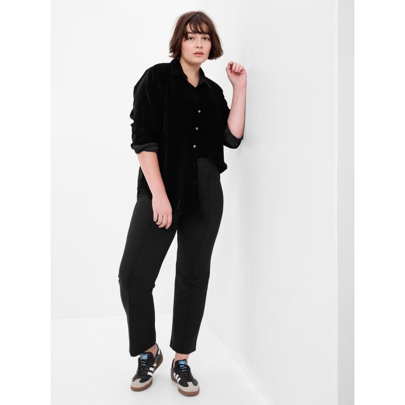 Dámské strečové kalhoty s lehkým rozšířením nohavic jsou ideální volbou pro moderní a všestranný šatník.Díky měkkému, pružnému materiálu se pohodlně nosí od rána do večera – ať už jste v kanceláři, na cestách nebo jen tak v pohybu.Zapínání na zip a druk působí upraveně, zatímco puky na přední straně nohavic vytvářejí elegantní siluetu.Střih je úzký přes boky a stehna a rovná nohavice se směrem dolů lehce rozšiřuje do jemného zvonu.Zkrácená délka sahá nad kotníky a skvěle vynikne s botami na podpatku i teniskami.Modelka ve velikosti S (27) měří přibližně 178 cm, modelka ve velikosti L (32) měří přibližně 178 cm. 67 % viskóza, 30 % nylon, 3 % elastan