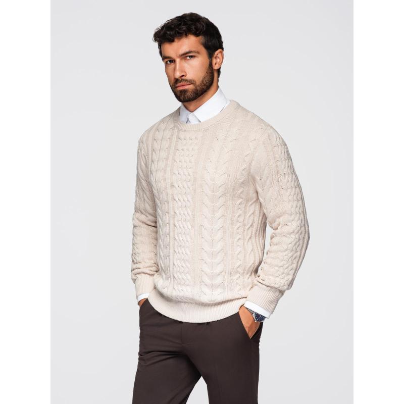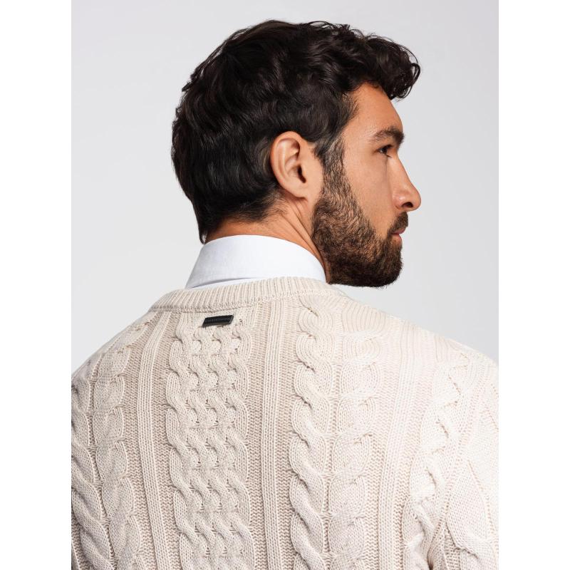 Elegantní pánský svetr se zajímavou vazbou – ecru V1 OM-SWSW-0173
