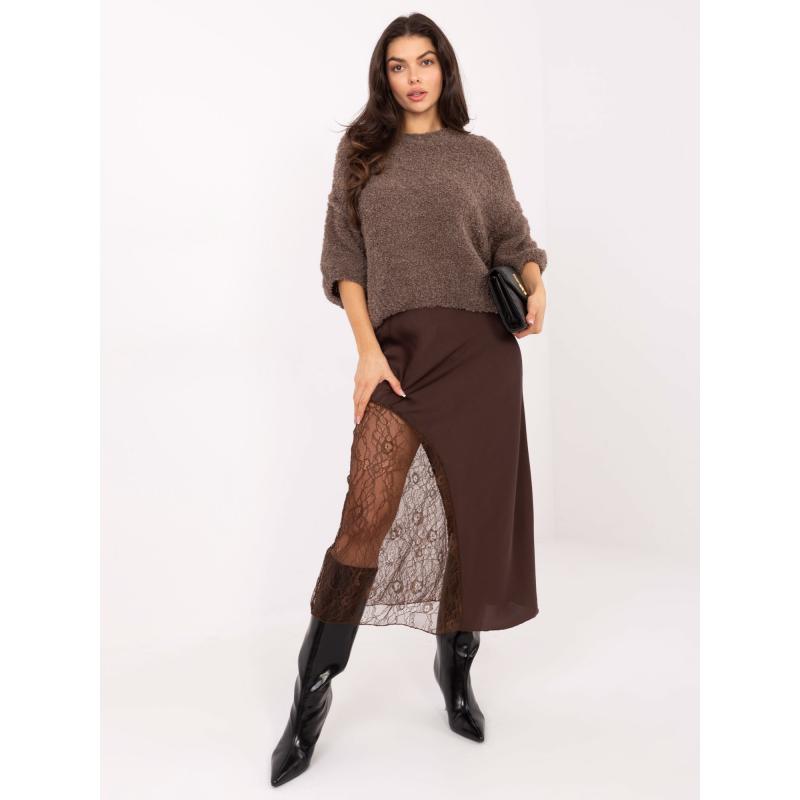 Tmavě béžový puntíkovaný svetr s třpytivými nitěmi
