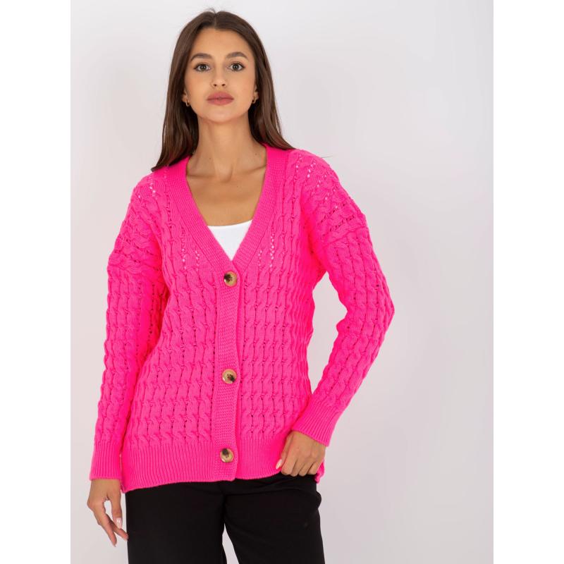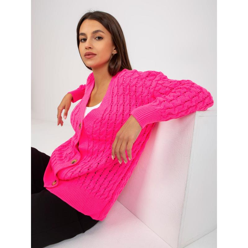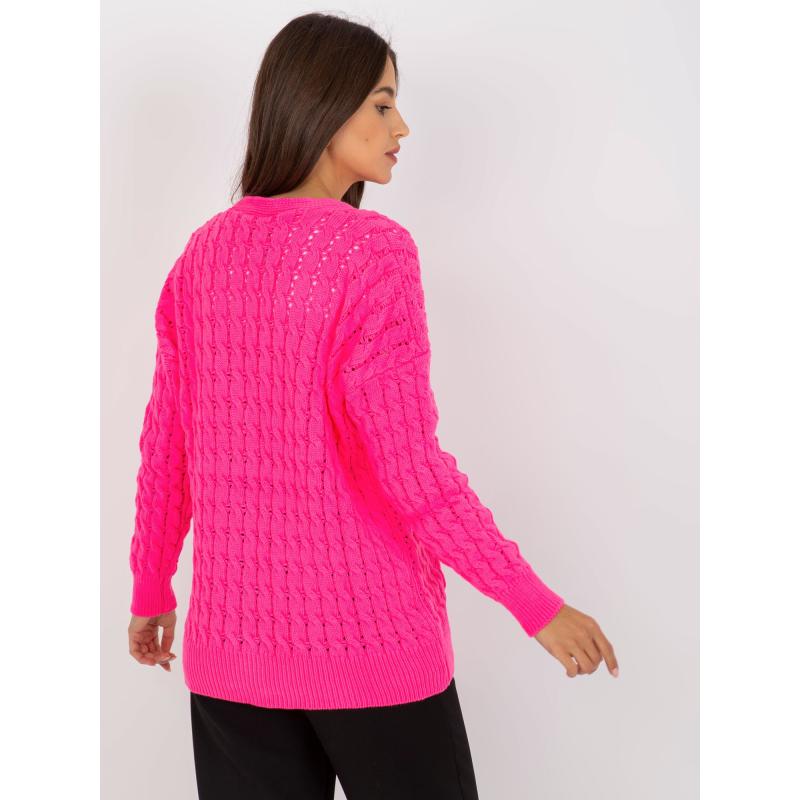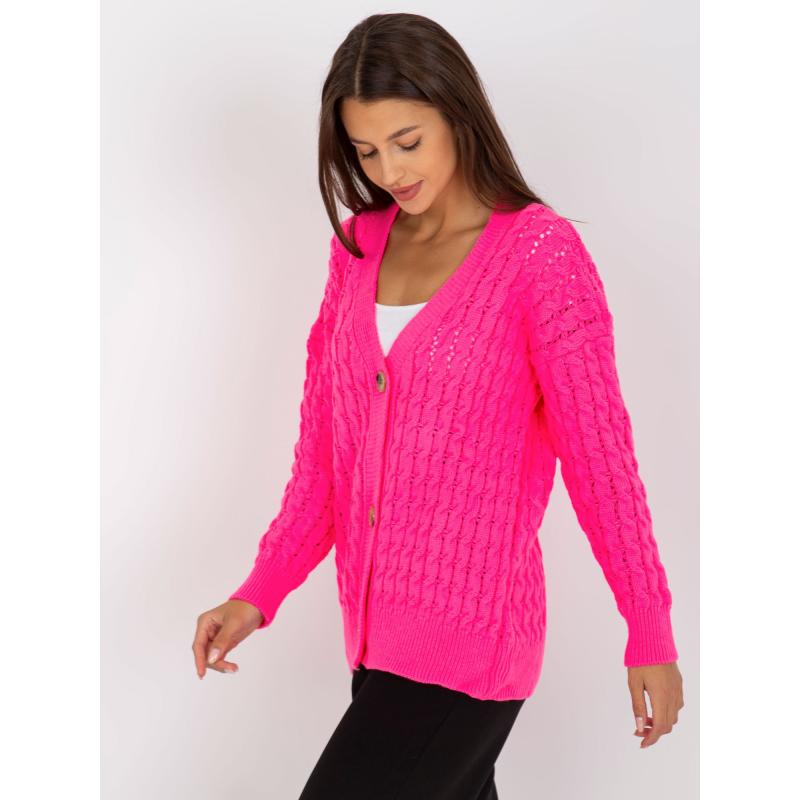 Fluo růžový prolamovaný svetr s knoflíky RUE PARIS