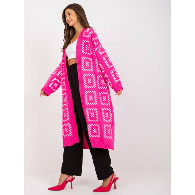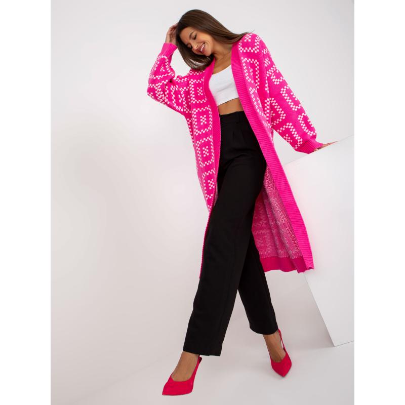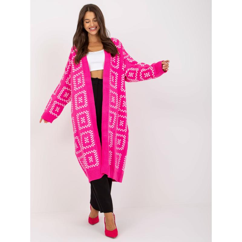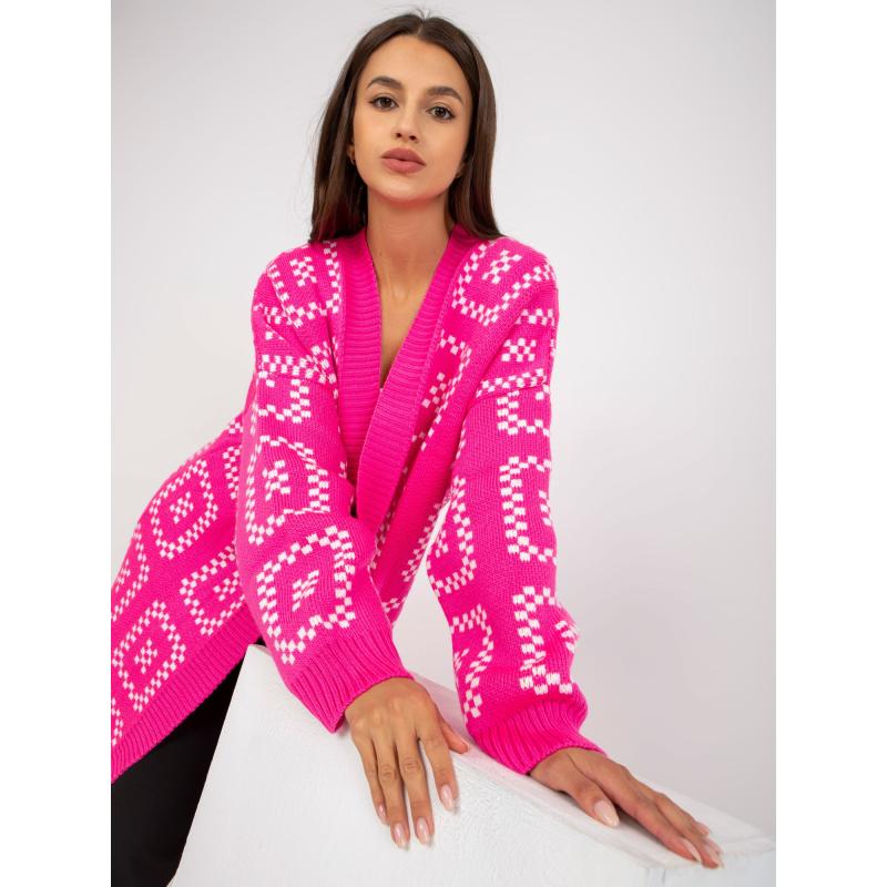 Fluo růžový vzorovaný kardigan bez zapínání RUE PARIS