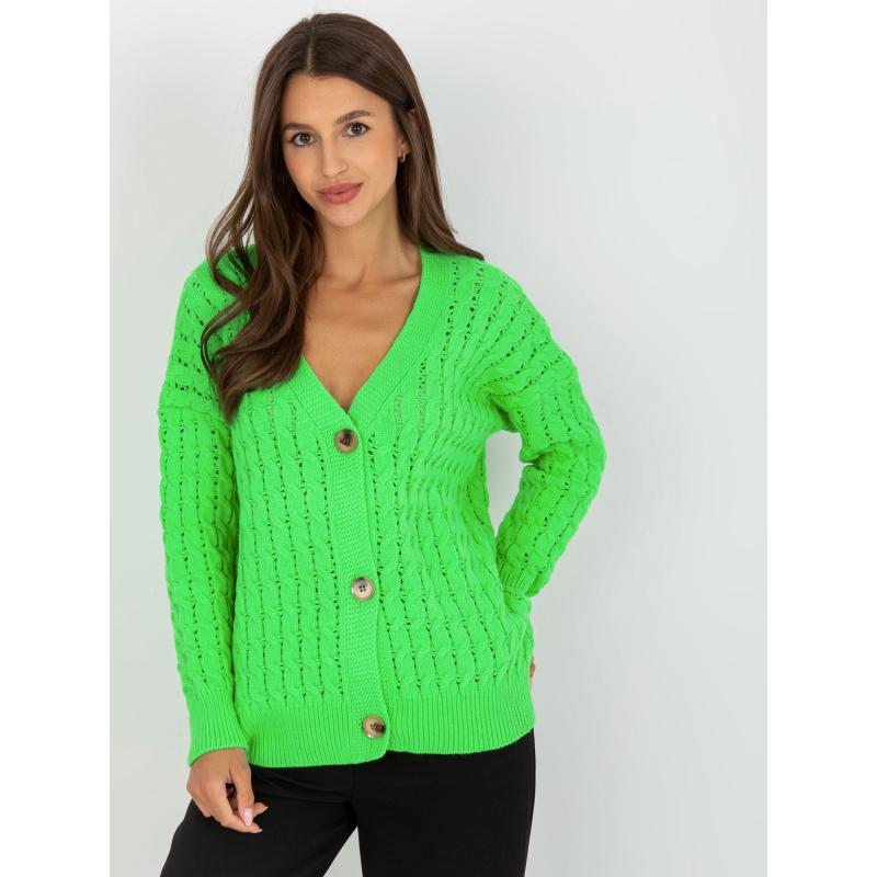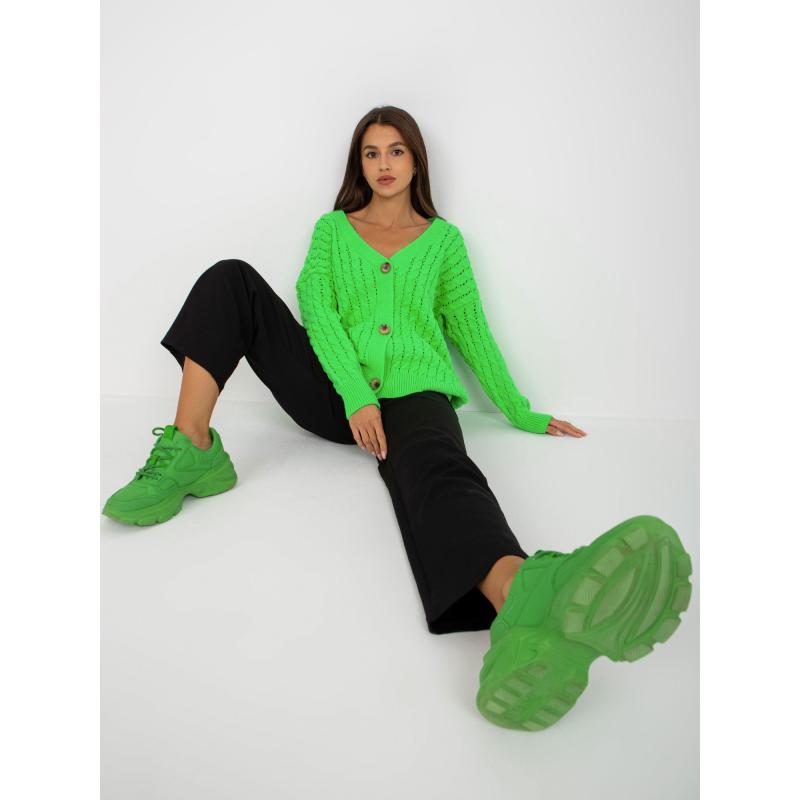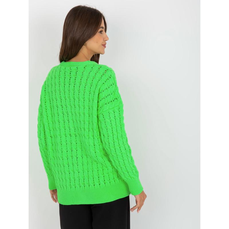 Fluo zelený prolamovaný svetr s copánkovým vzorem RUE PARIS