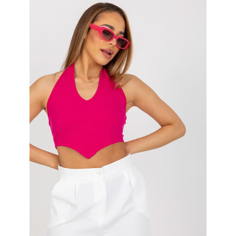 Fuchsiový basic pruhovaný crop top s výstřihem RUE PARIS