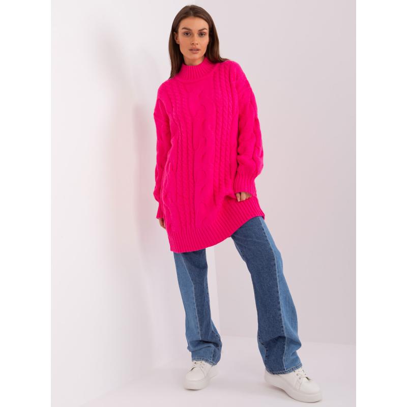 Fuchsiový pruhovaný asymetrický svetr se stojáčkem