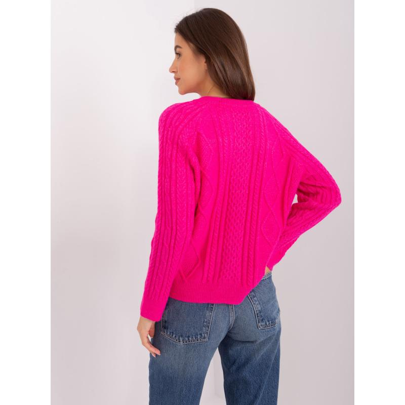 Fuksziás női kardigán gombokkal és kötött csíkokkal