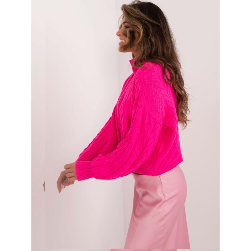 Fuchsiový klasický svetr s kulatým výstřihem