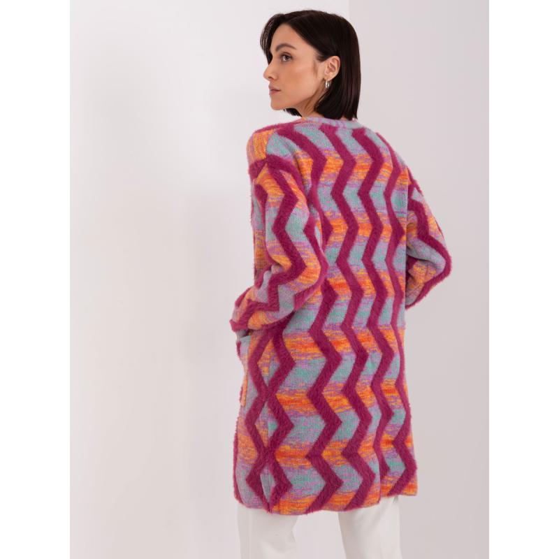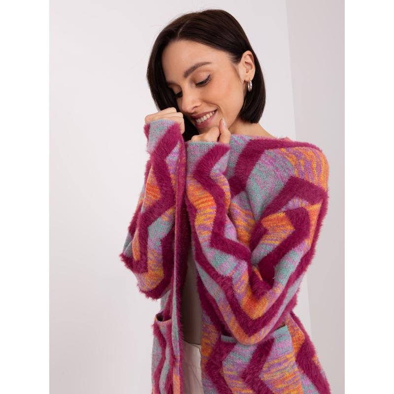 Fuchsiový pruhovaný asymetrický svetr se stojáčkem