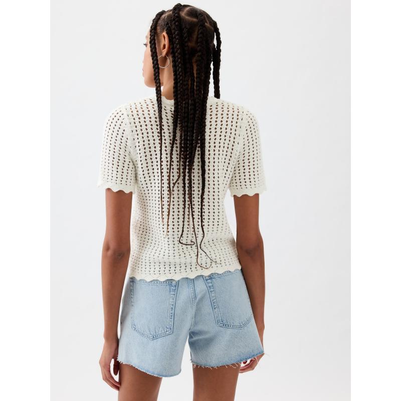 Dámské háčkované tričko.Krátký rukáv a kulatý výstřih.Rovný střih.Bez podšívky.Jednobarevné. 100 % bavlna