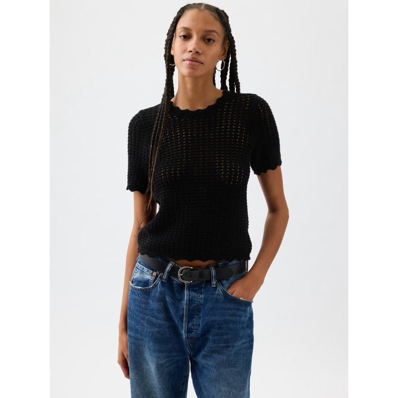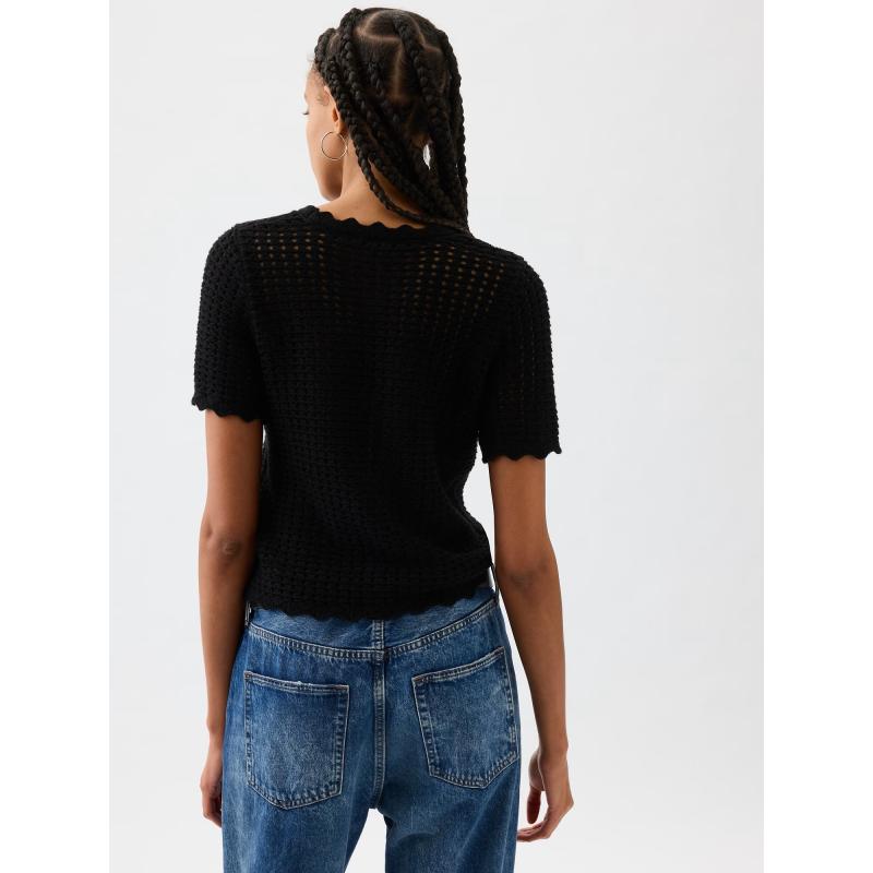Dámské háčkované tričko.Krátký rukáv a kulatý výstřih.Rovný střih.Bez podšívky.Jednobarevné. 100 % bavlna
