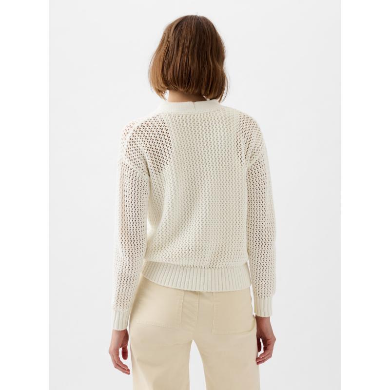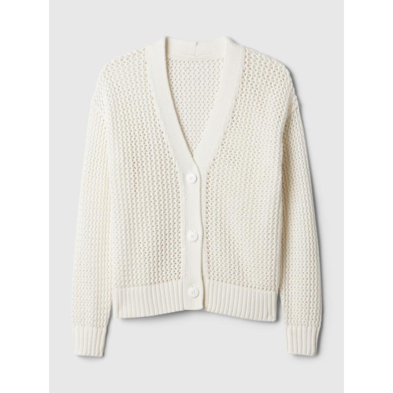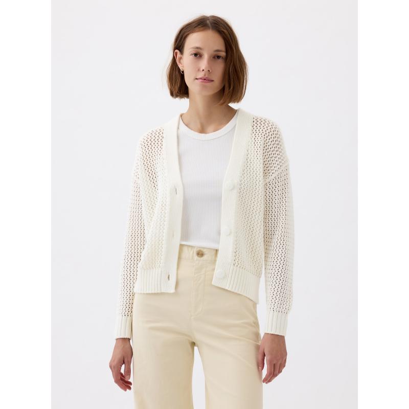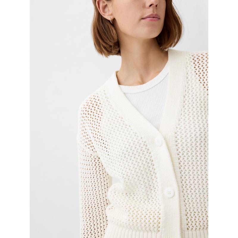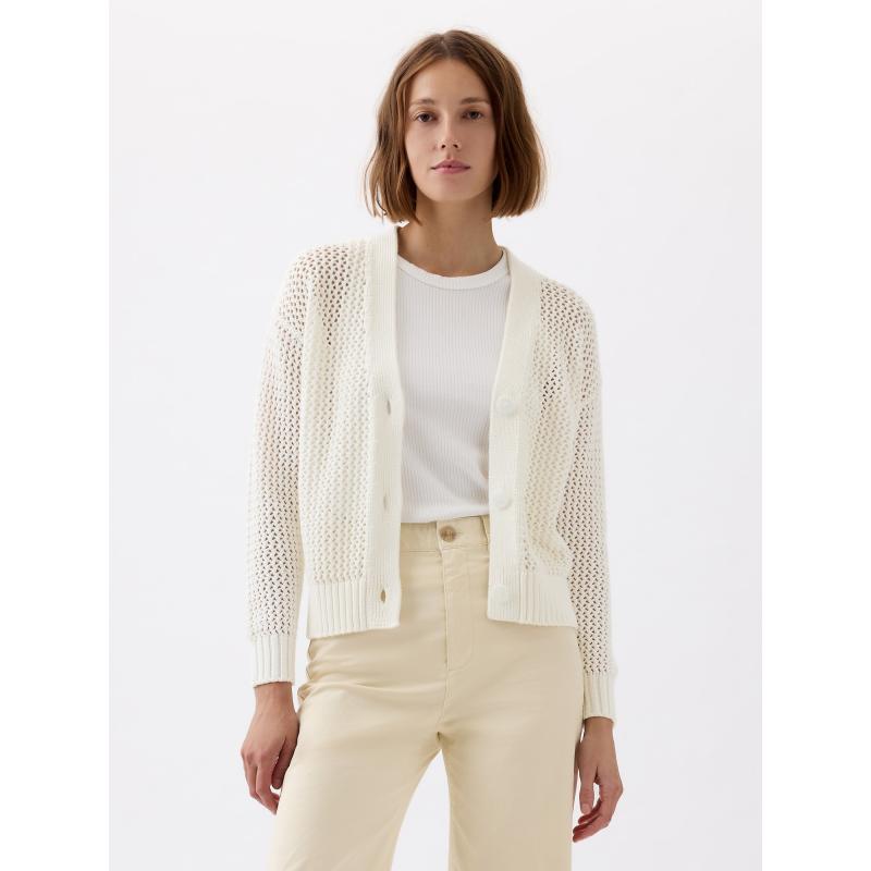 Dámský háčkovaný kardigan.Se zapínáním na knoflíky.Výstřih do V.Dlouhé spadlé rukávy.Pružné žebrované náplety. 100 % bavlna