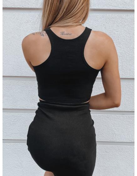 Komplet složený z topu a sukně vytváří spíše obepínající tělo, které zdůrazňuje jednotlivé části těla. Krátký top mírně odhaluje horní část břicha, takže jde také o poměrně odvážný outfit, který se zároveň dokonale hodí do letního klimatu. Dámské sukně s vysokým pasem zdůrazňují linii pasu a boků, takže tento dvoudílný komplet je bezpochyby velmi ženský a smyslný. Navíc se dá stylizovat mnoha různými způsoby.