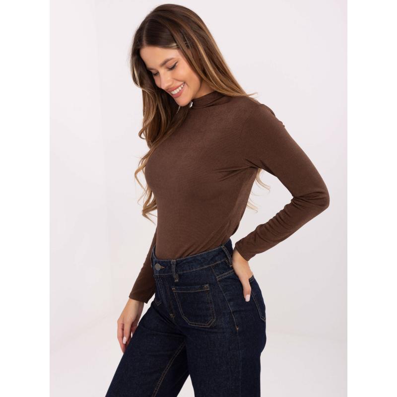 Hnědá elegantní blůza s dlouhým rukávem RUE PARIS