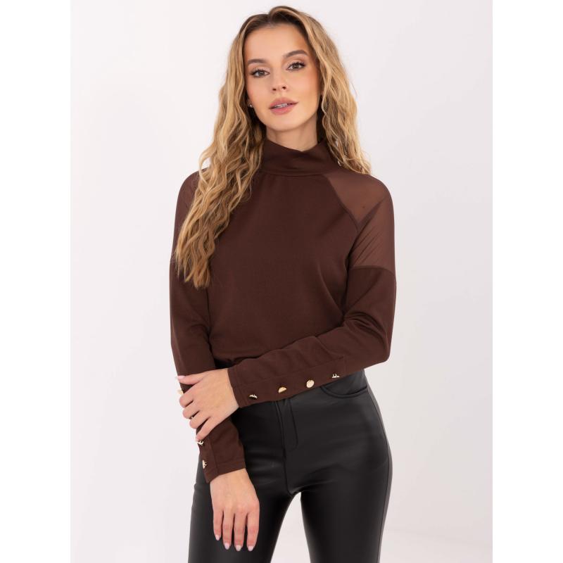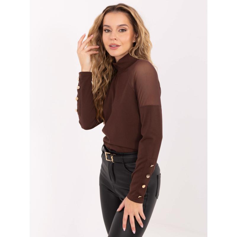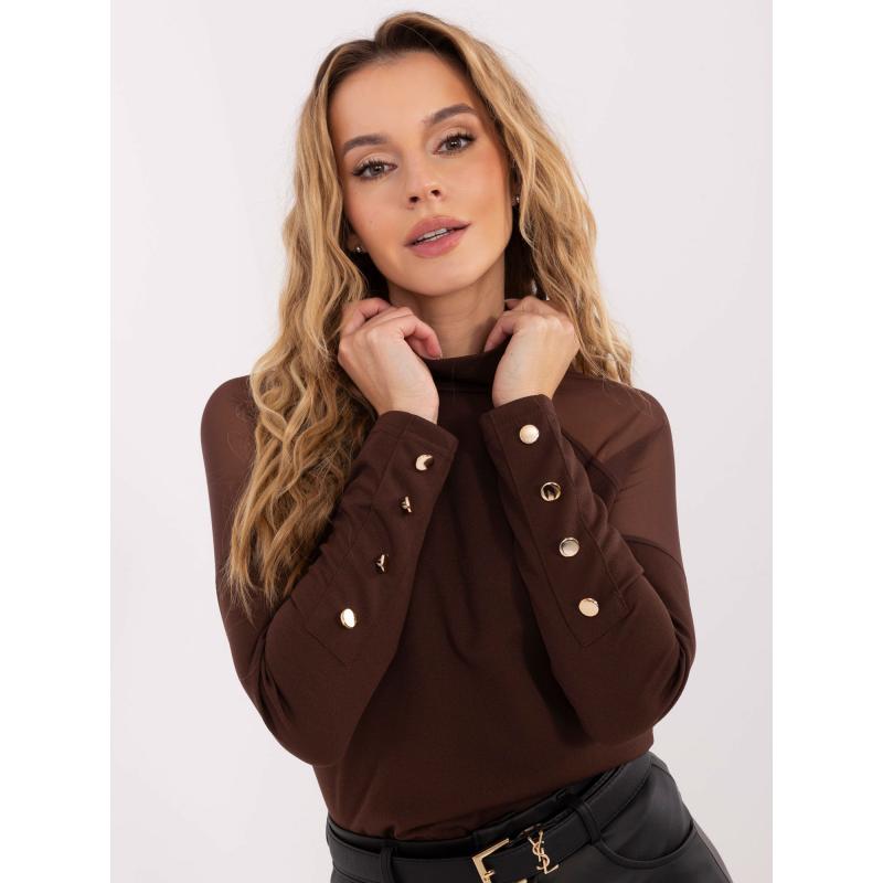 Hnědá elegantní blůza s dlouhými rukávy RUE PARIS