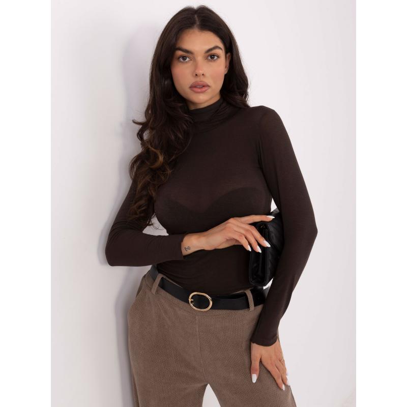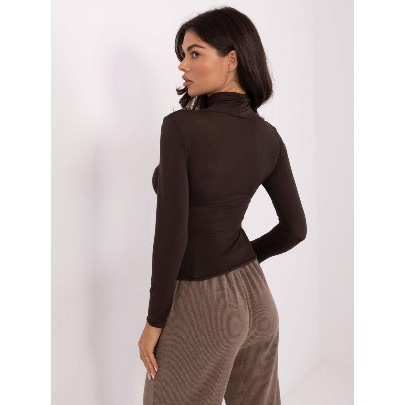 Tmavě hnědý bouclé svetr s dlouhými rukávy