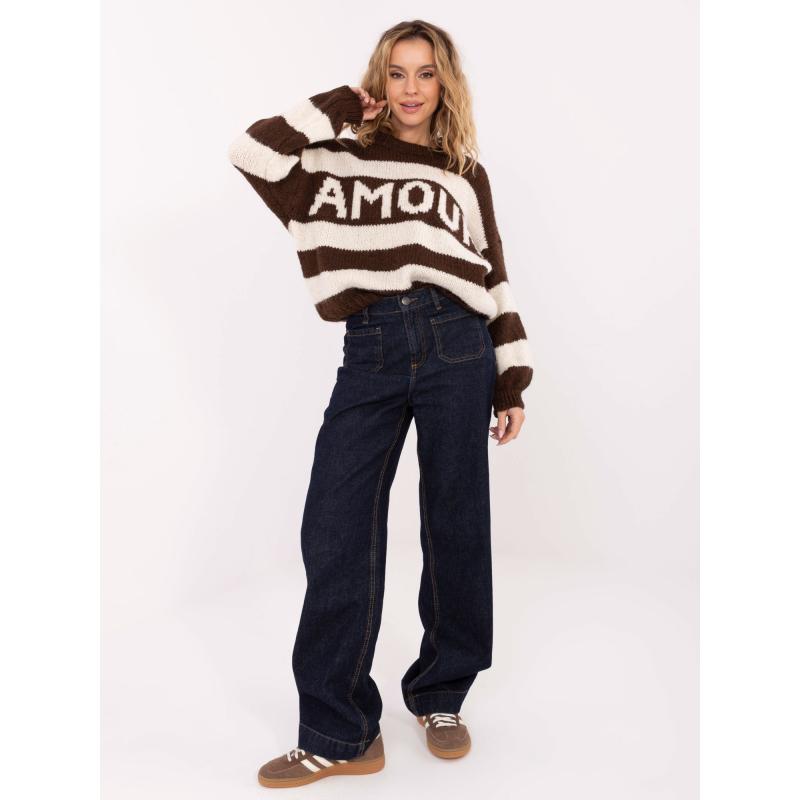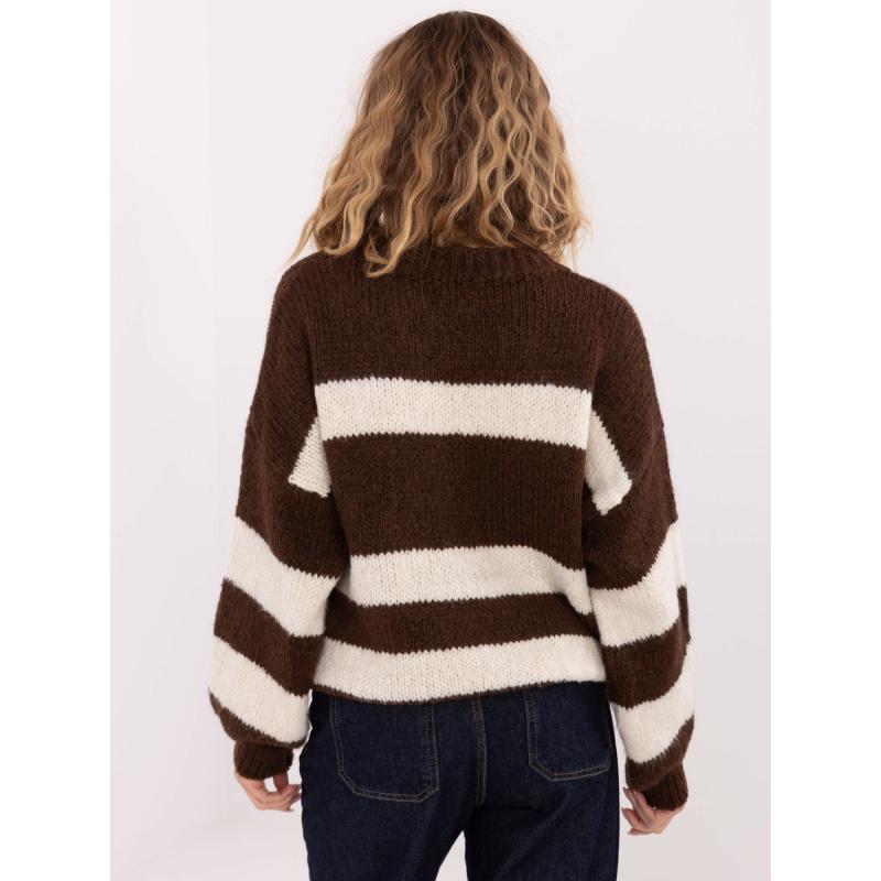 Hnědo-tmavě béžový dámský svetr s pruhy