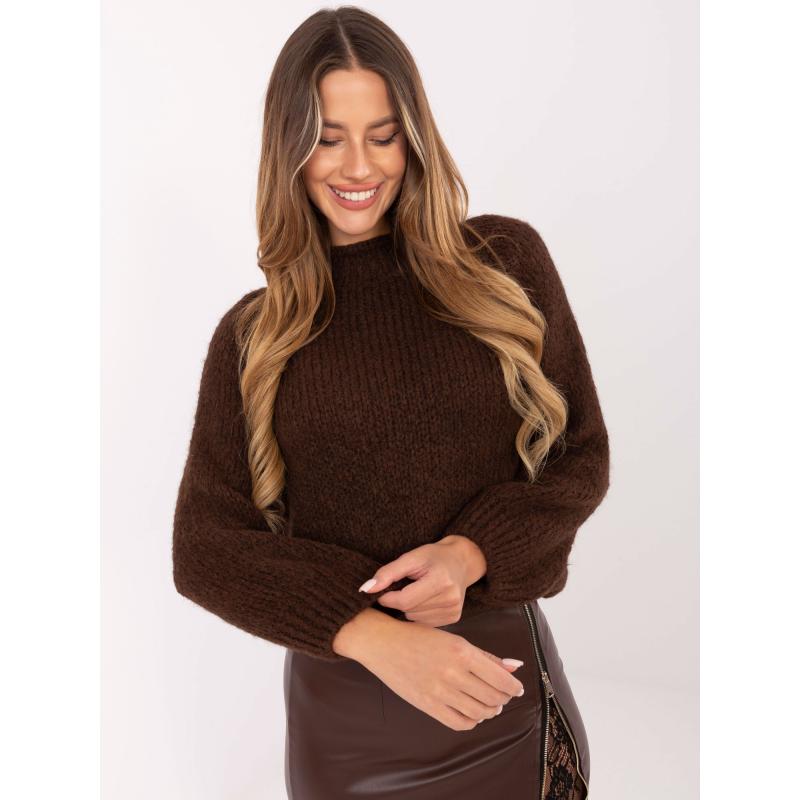 Tmavě hnědý bouclé svetr s příměsí vlny
