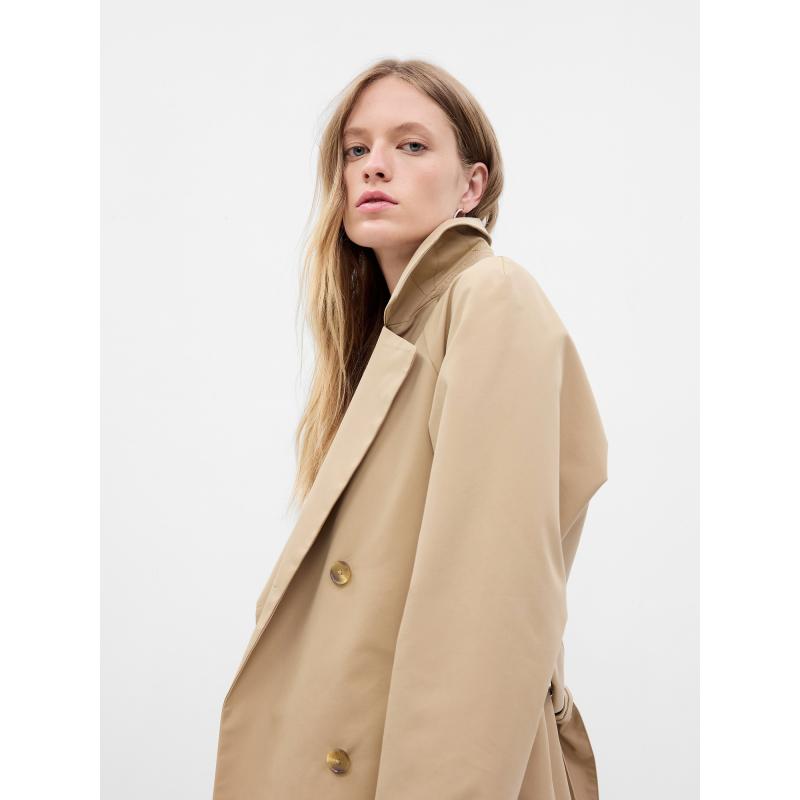 Elegantní trenčkot z hladké tkaniny, který dodá vašemu outfitu sofistikovaný nádech.Klasický límec pro nadčasový vzhled.Dlouhé rukávy s knoflíkovými manžetami a hladkou podšívkou pro maximální komfort.Dvojité zapínání na knoflíky.Šikmé přední kapsy pro praktické uložení drobností.Pásek v pase pro zdůraznění siluety a přizpůsobení střihu.Rovná silueta s uvolněným, mírně oversize střihem.Délka končící nad kotníky, ideální pro elegantní vrstvení.Modelky nosící velikost S od značky Gap: výška 172–180 cm, pas 60–66 cm a boky 84–97 cm.Modelky nosící velikost XL: výška 172–180 cm, pas 86–91 cm a boky 114–127 cm.Pokud preferujete užší střih, doporučujeme zvolit menší velikost. 65 % bavlna, 35 % polyester