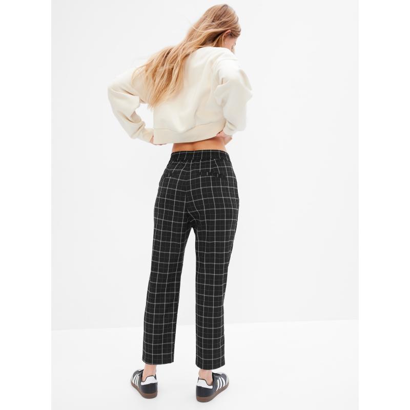 Dámské kostkované kalhoty.Středně vysoký a pružný pas.Šikmé boční kapsy.Volný střih a kratší nohavice. 65 % polyester, 33 % viskóza, 2 % elastan