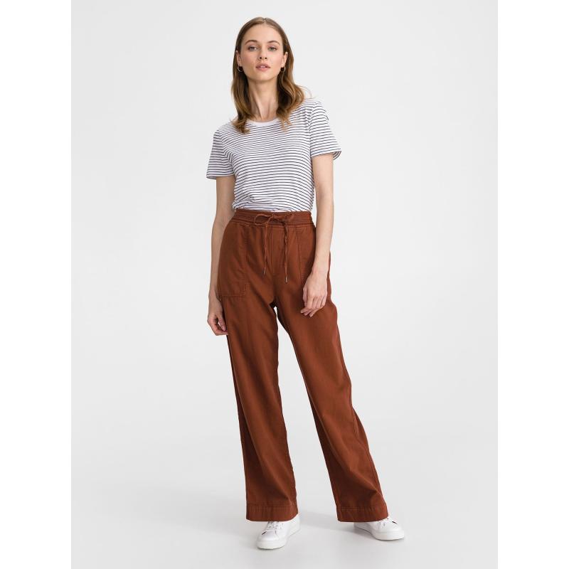 Dámské kalhoty s volnou siluetou a elastickým pasem přinášejí spojení udržitelného materiálu a ležérního stylu pro každodenní nošení.Vyrobeny s 18 % podílem TENCEL™ Modal – vlákna na bázi dřeva, získávaného z udržitelně obhospodařovaných lesů, kde 99 % surovin pochází z certifikovaných nebo kontrolovaných zdrojů.Pohodlný elastický pas se stahovací šňůrkou zajišťuje snadné oblékání a individuální přizpůsobení.Přední šikmé kapsy dodávají funkčnost.Střih sedí v přirozené výšce pasu a široká nohavice poskytuje vzdušnost i maximální volnost pohybu.Ideální pro volný den, cestování nebo letní kombinace s topem či košilí. 82 % bavlna, 18 % Tencel