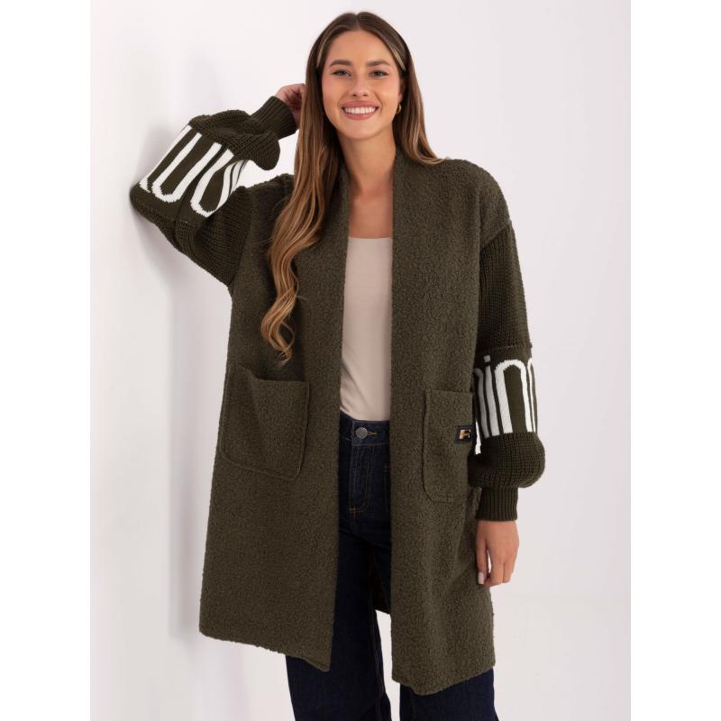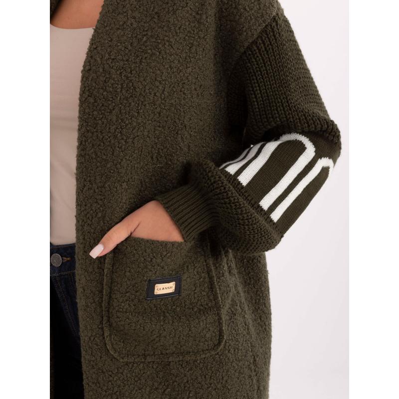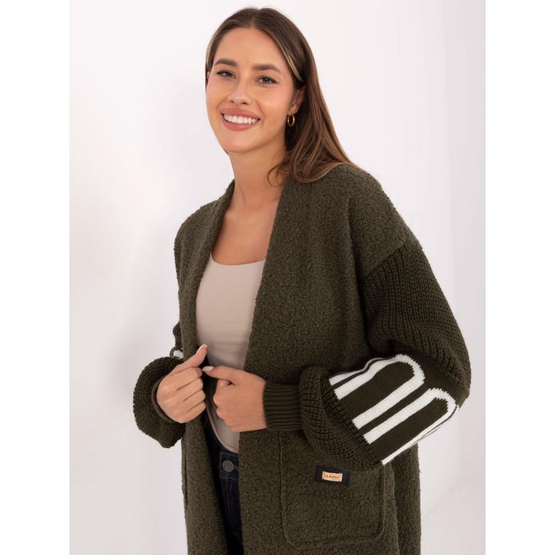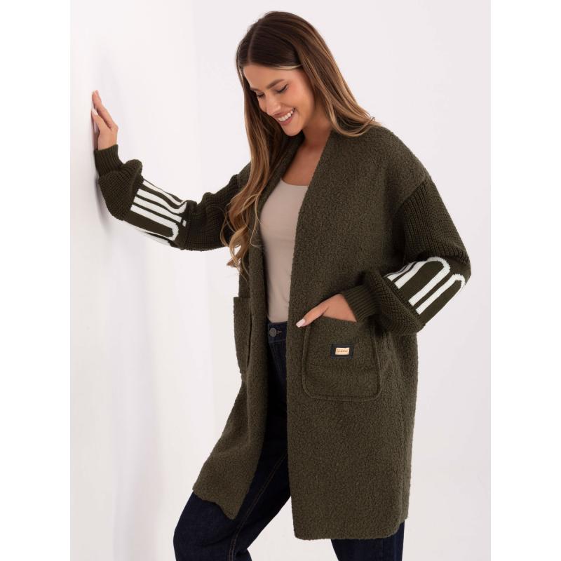 Khaki dámský bouclé kardigan s kapsami