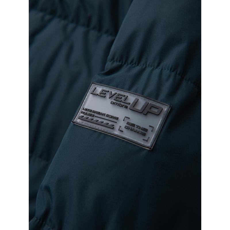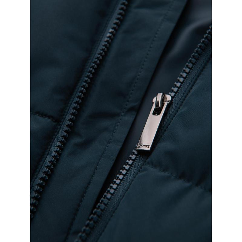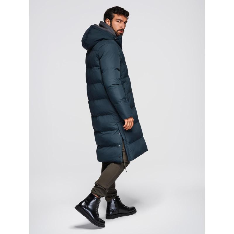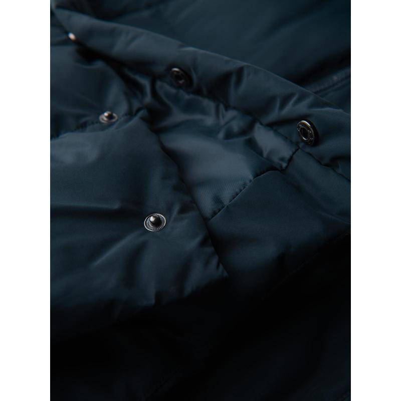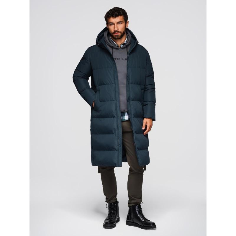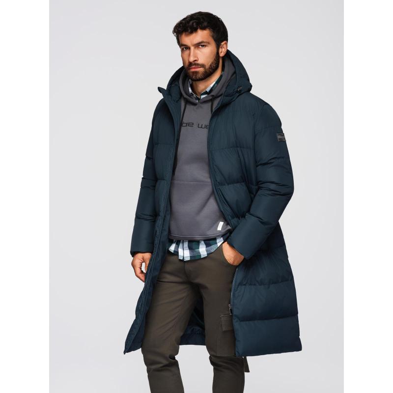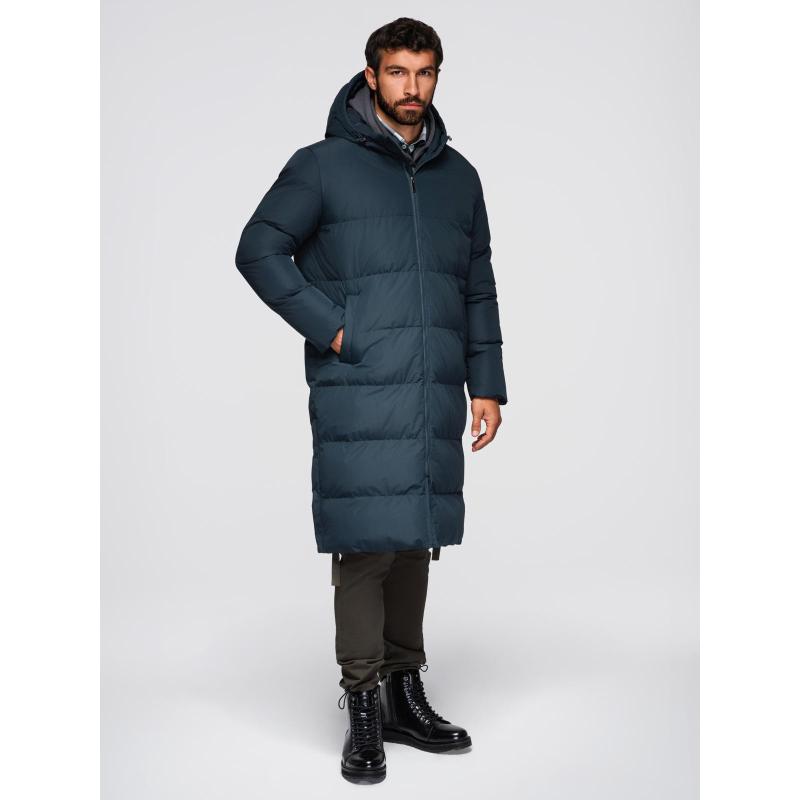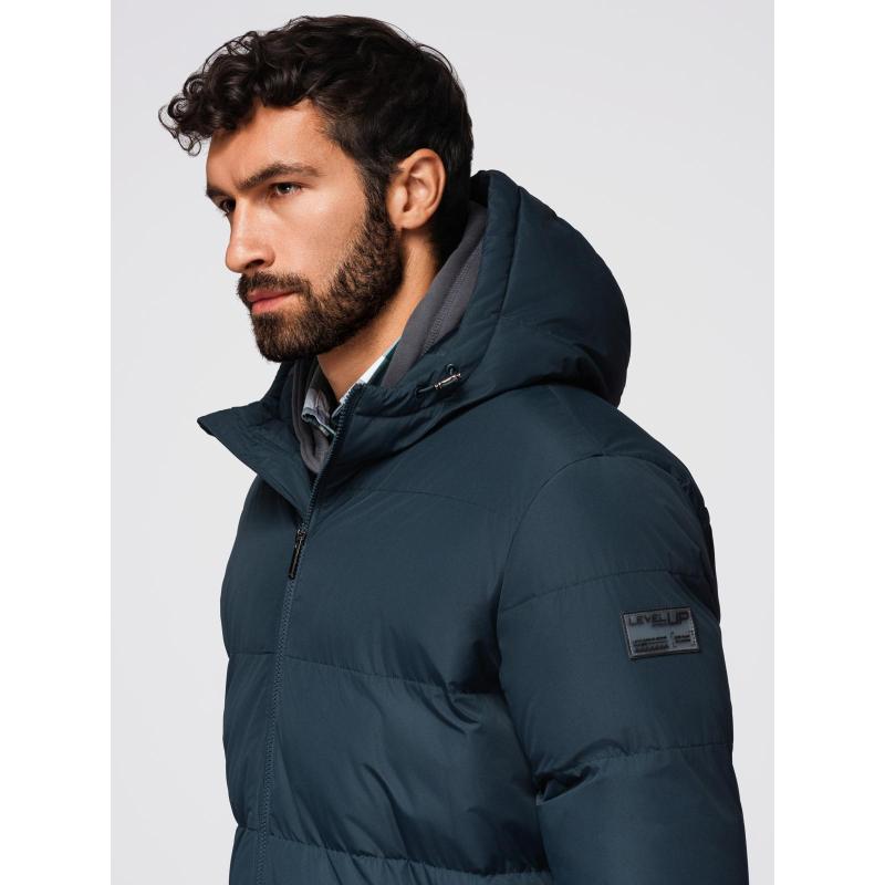 Klasická pánská dlouhá bunda s kapucí – tmavě modrá V2 OM-JALJ-0269