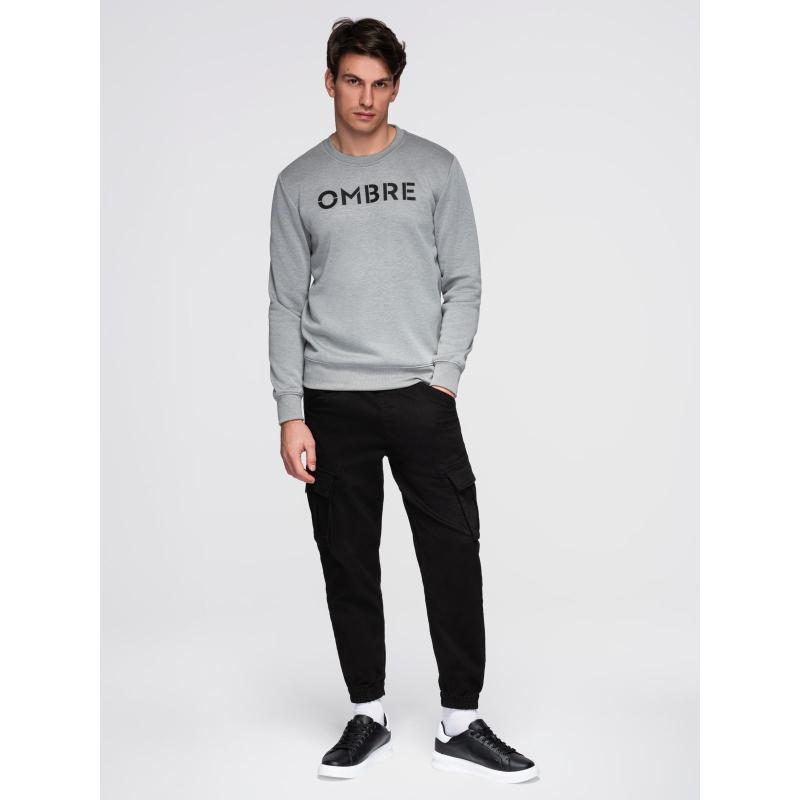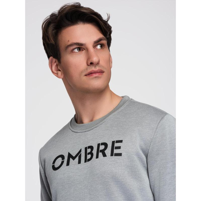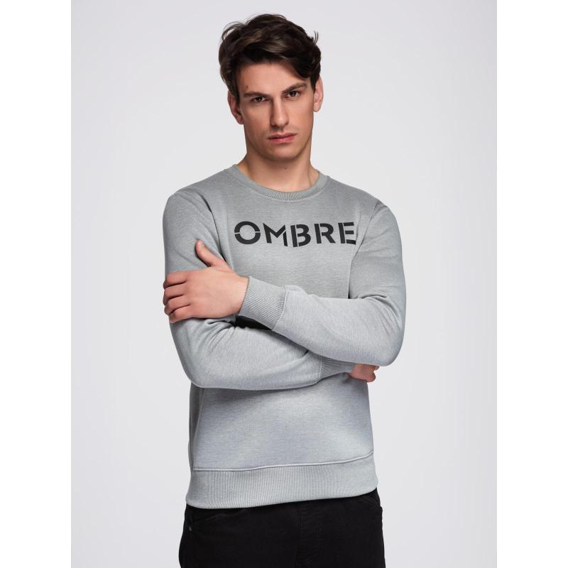 Klasická pánská mikina s nápisem – šedá melírovaná V1 B1711