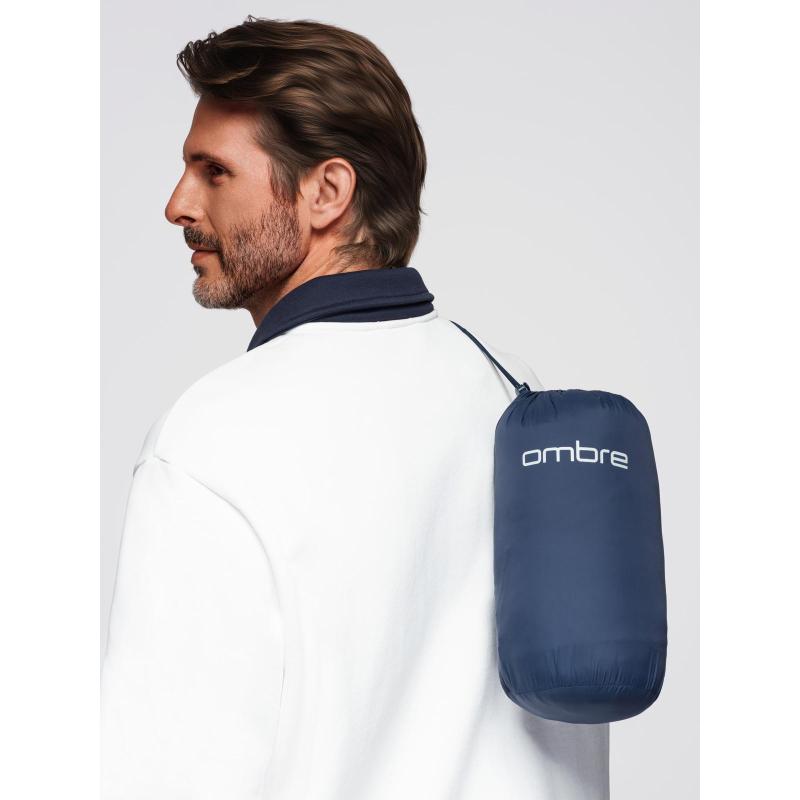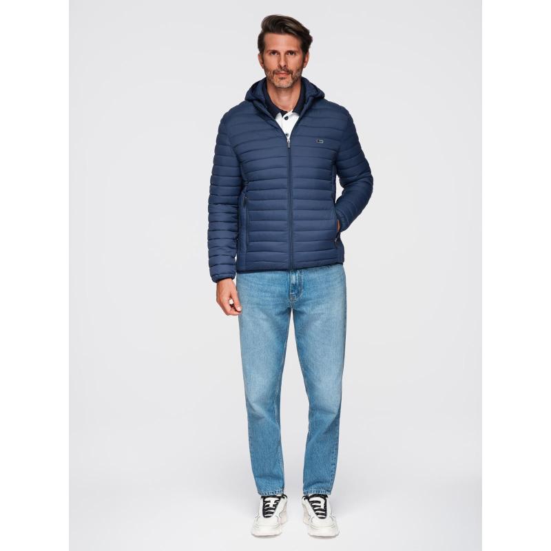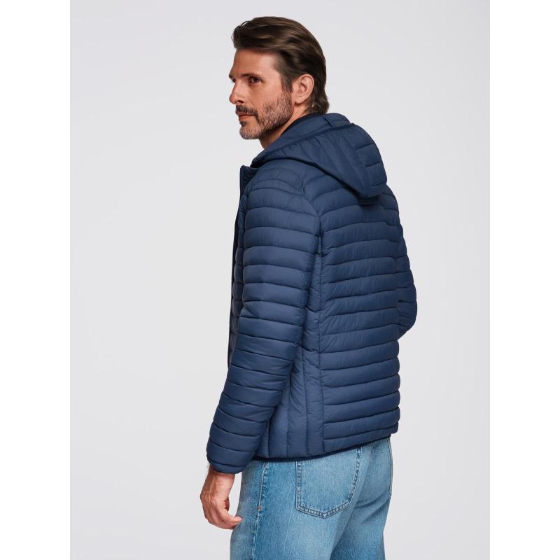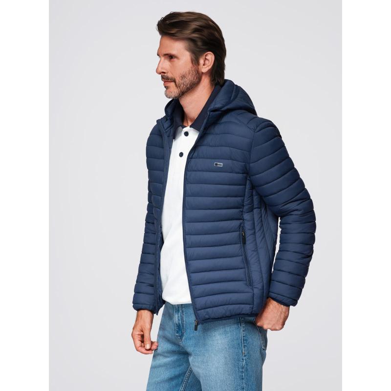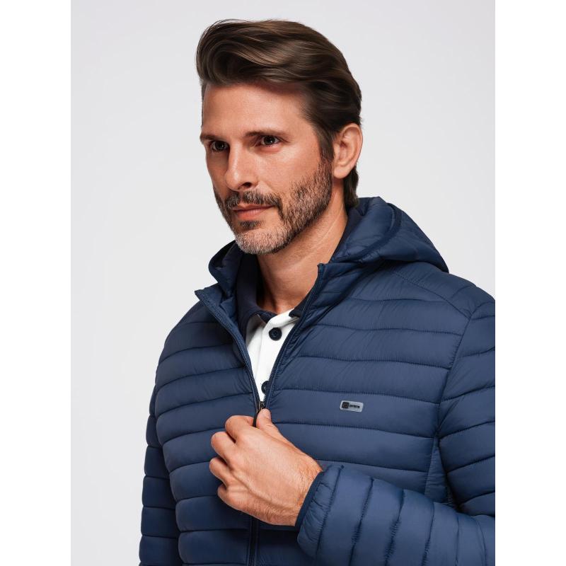 Klasická pánská prošívaná bunda s možností pouzdra – tmavě modrá V1 OM-JALP-0295