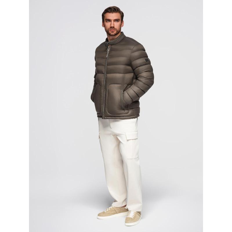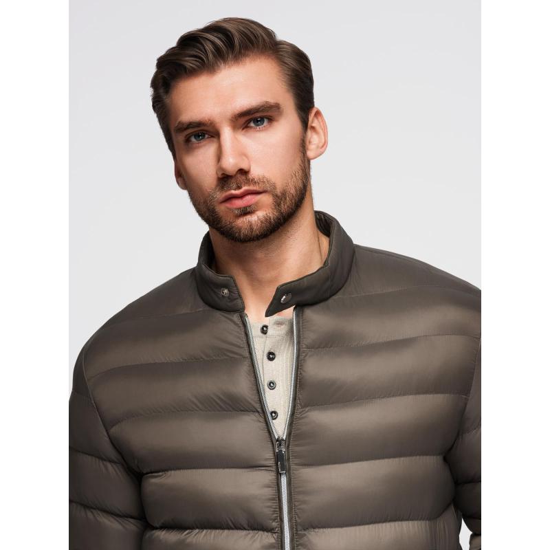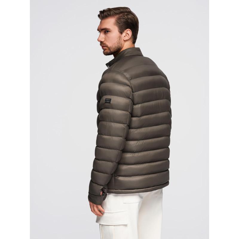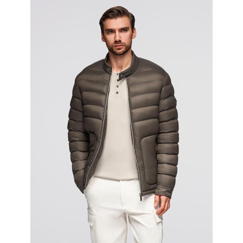 Klasická prošívaná pánská bunda se stojáčkem – olivová V3 OM-JALP-0261