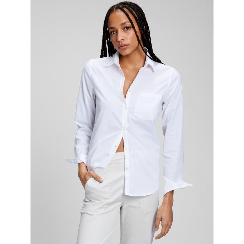Dámská bavlněná košile.Klasický rovný střih.U krku límeček.Zapínání na knoflíčky.Dlouhé rukávy s manžetou.Malá kapsička.Jednobarevná. 100 % bavlna Better Cotton (BCI)