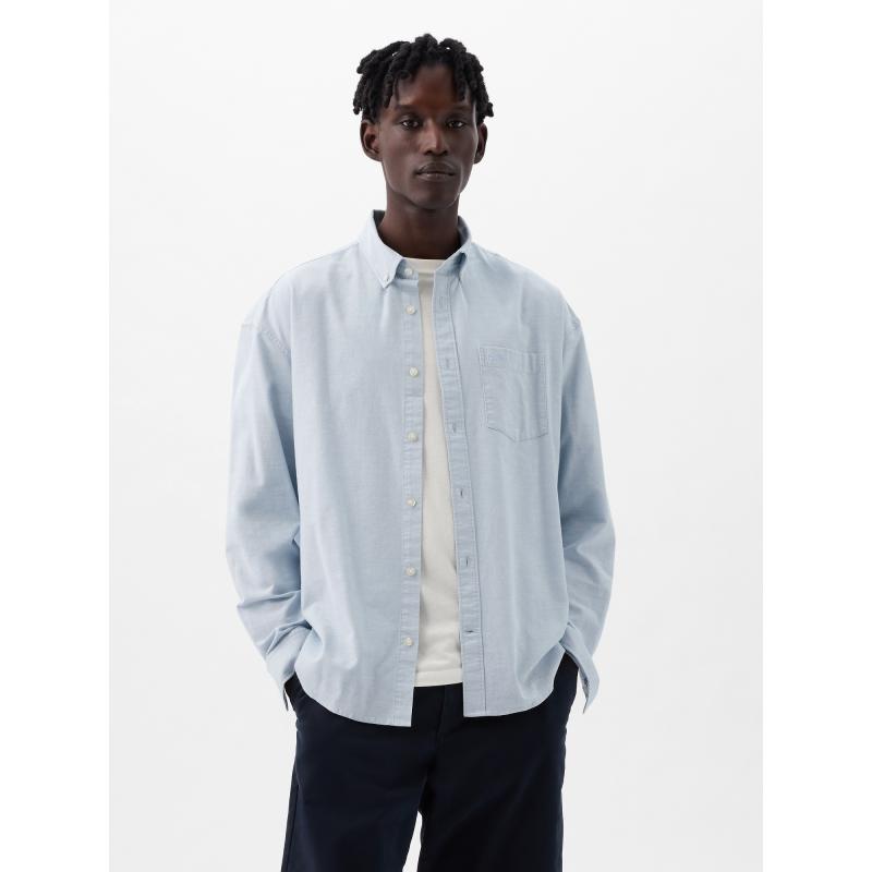 Pánská oxford košile.Střih oversize.Dlouhé rukávy s manžetou.Zapínání na knoflíčky.Na hrudi našitá kapsička.Drobné logo.Jednobarevná. 98 % bavlna, 2 % elastan