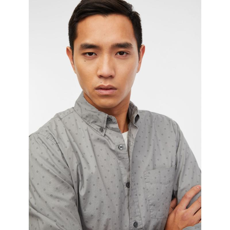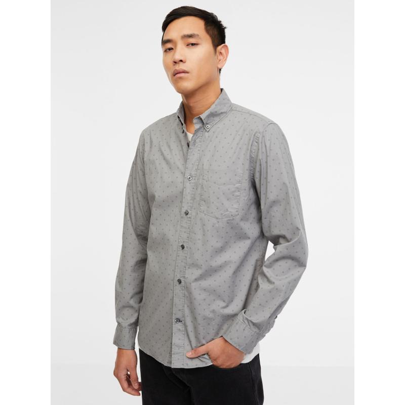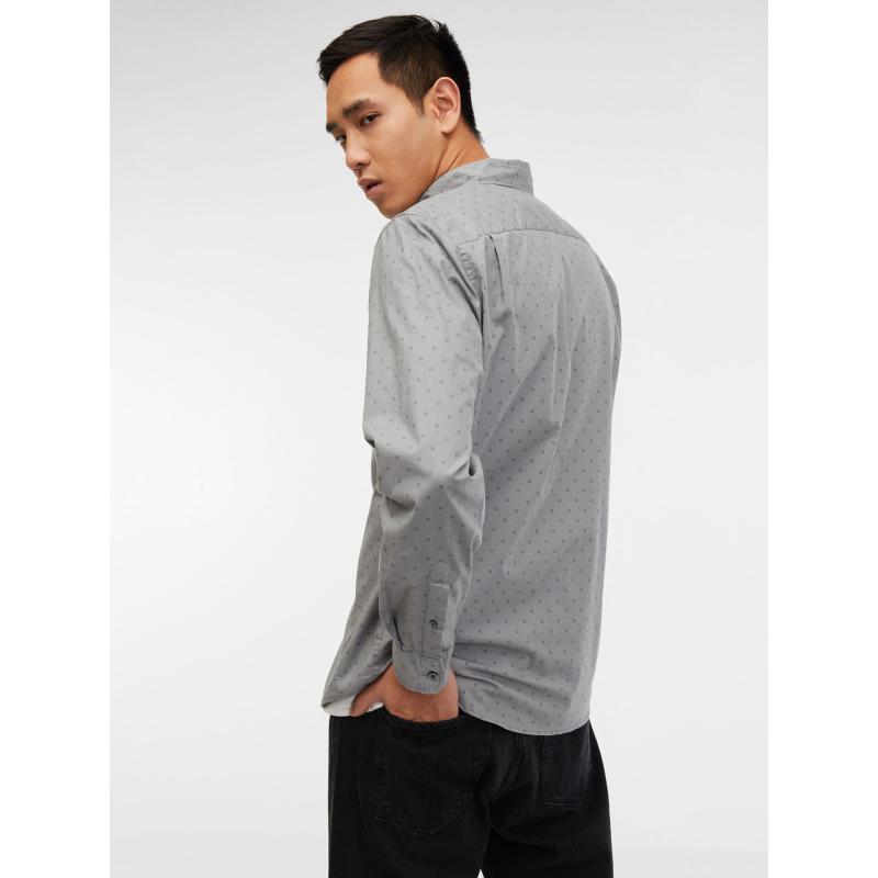 Pánská košile s dlouhým rukávem.Límeček a zapínání na knoflíčky.Na hrudi našitá malá kapsička.Rukávy s manžetou.Zaoblený spodní lem. 98 % bavlna, 2 % elastan