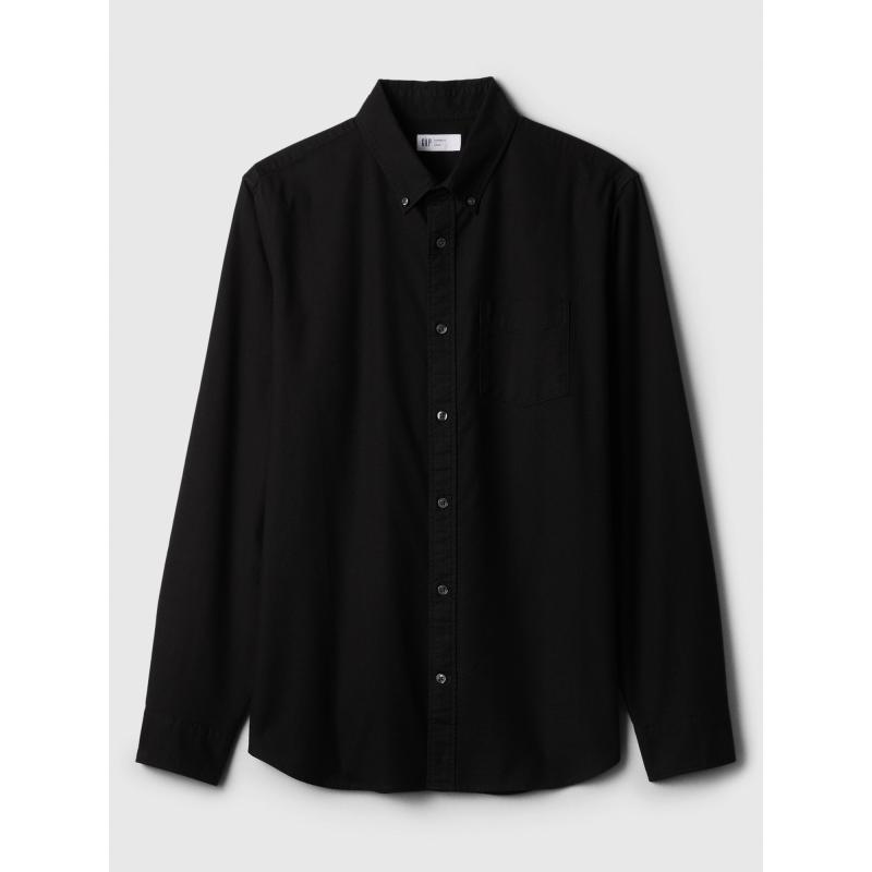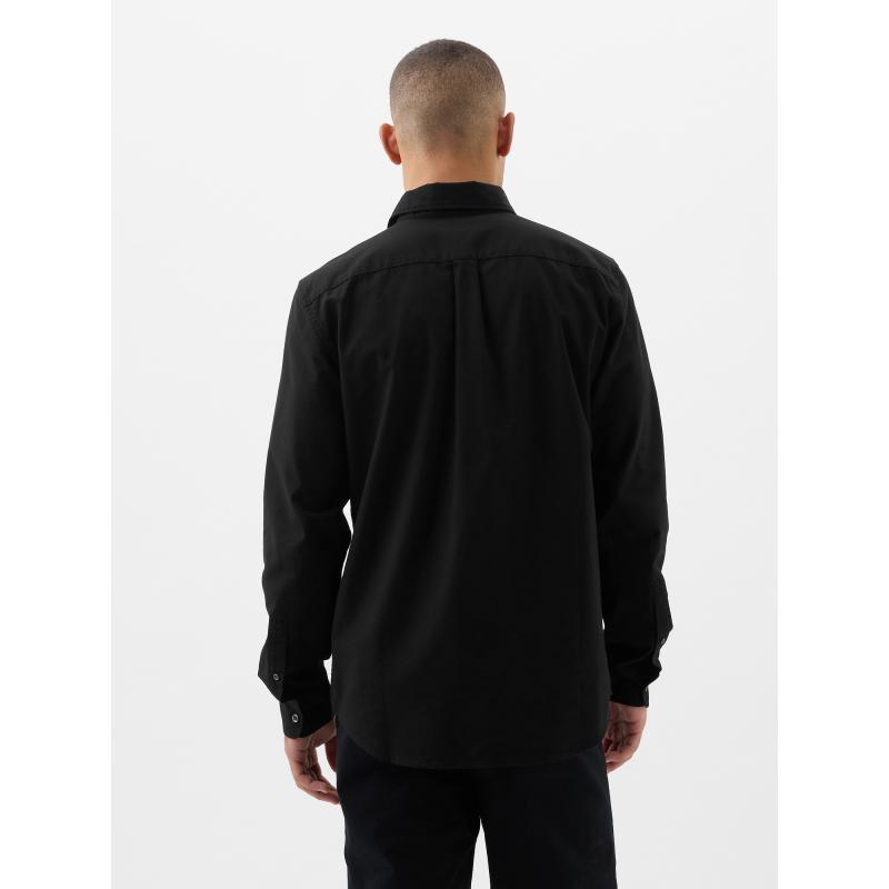 Pánská bavlněná košile. Hladká oxford tkanina. Dlouhé rukávy s manžetami na knoflíky. Límeček s knoflíky. Zaoblený spodní lem, který je vzadu mírně delší. Navrženo k nošení zastrčené i nezastrčené. Standardní uvolněný střih, pohodlný přes hrudník a ramena. Délka těsně pod boky. 100 % bavlna