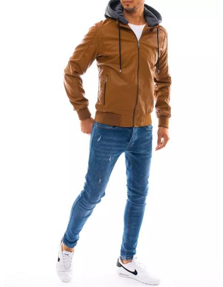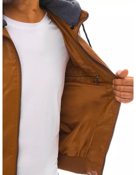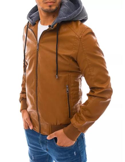 Pánská koženková bunda s kapucí hnědá STYLE